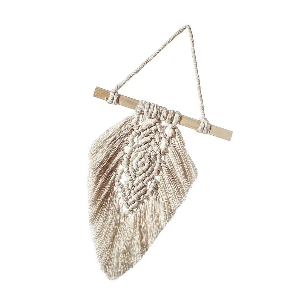 Макраме в стиле бохо, настенный хлопковый Тканый гобелен в стиле бохо с листьями и кисточками в форме листьев для украшения дома, Настенный декор