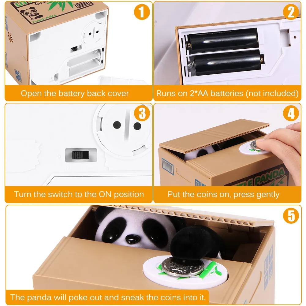 Особенности:Механический котенок украсть ваши монеты, чтобы помочь вам сэкономить.Один из самых очаровательных банков монет в мире.Идеальный Новый банк для домашних и офисных столов.Работает на аккумуляторах 2 * AA (не входят в комплект).Положите монету в белую тарелку, и котенок его поймает.Также отличный подарок для детей. Примечание:Вам нужно поместить монету на кнопку, а затем нажать кнопку, чтобы открыть ее. Спецификация: