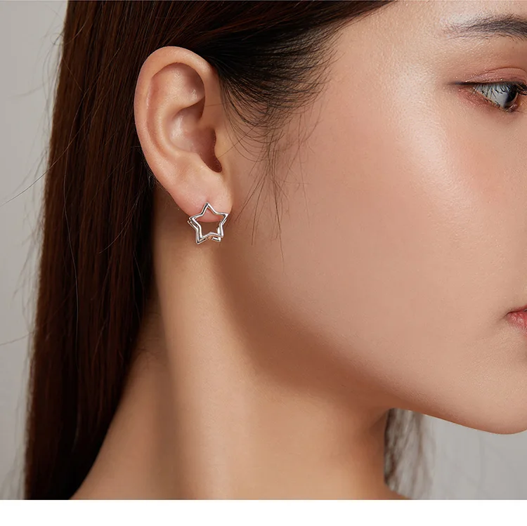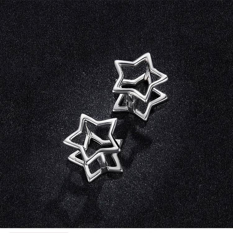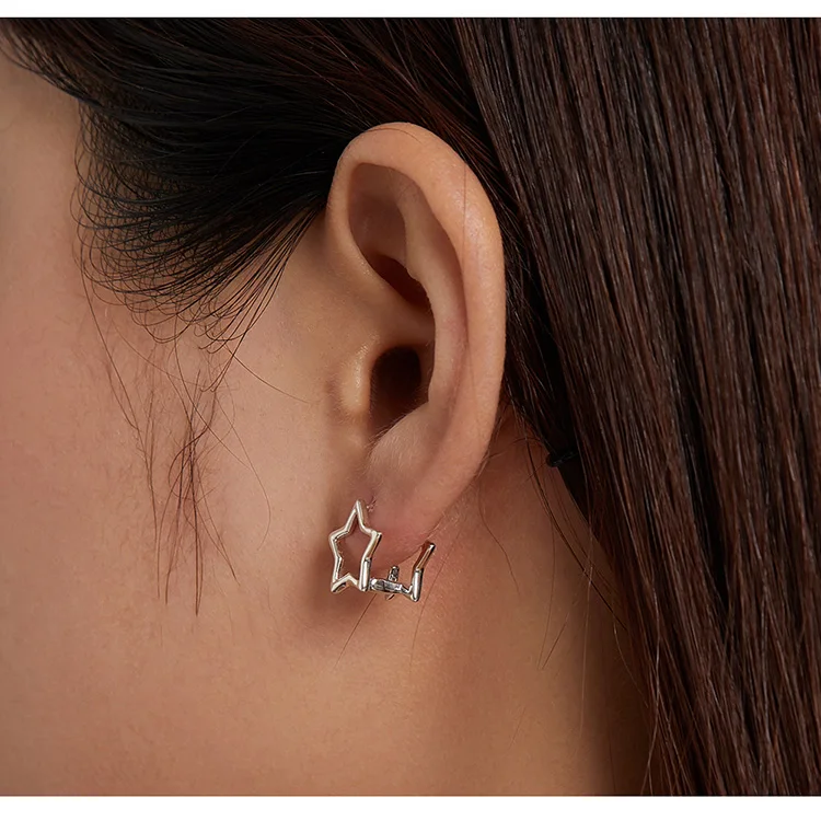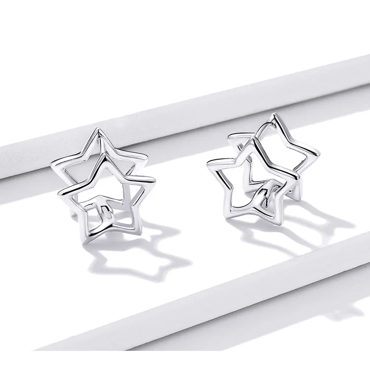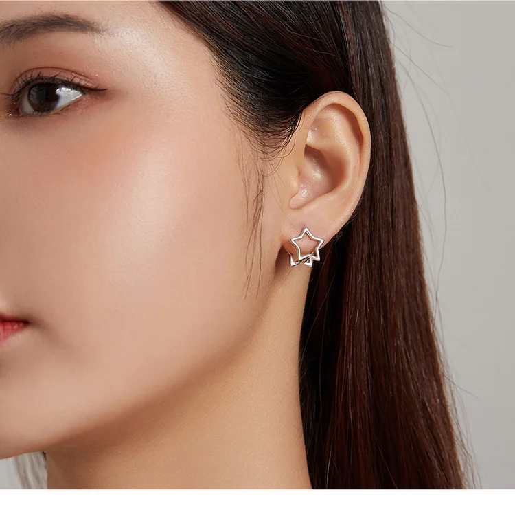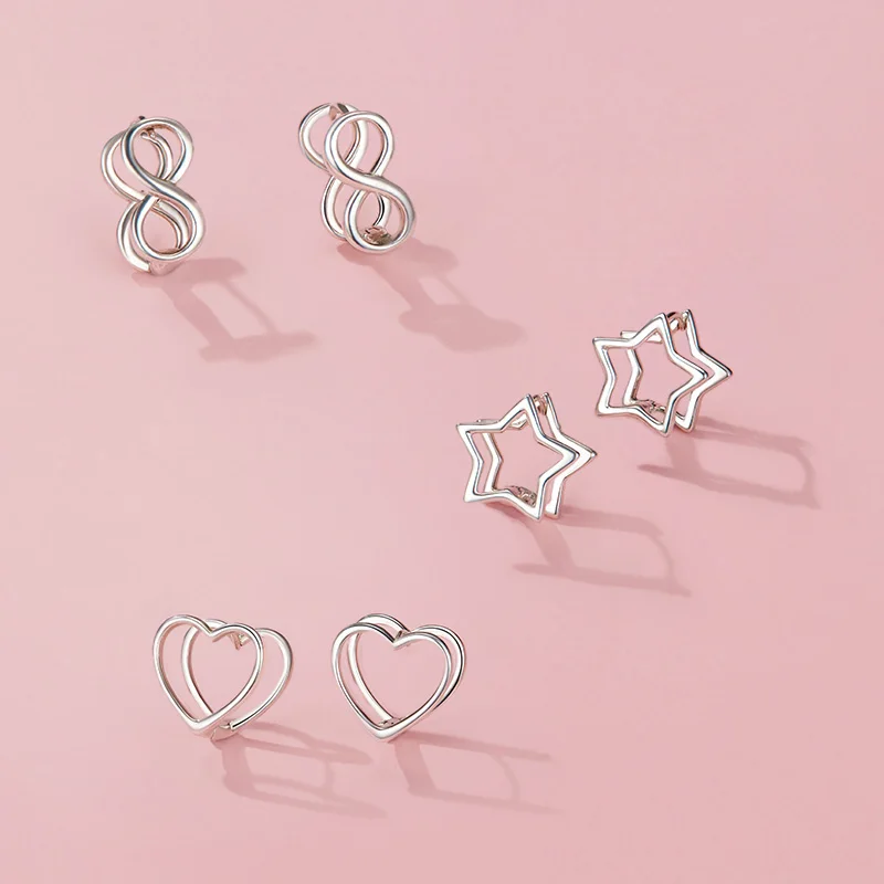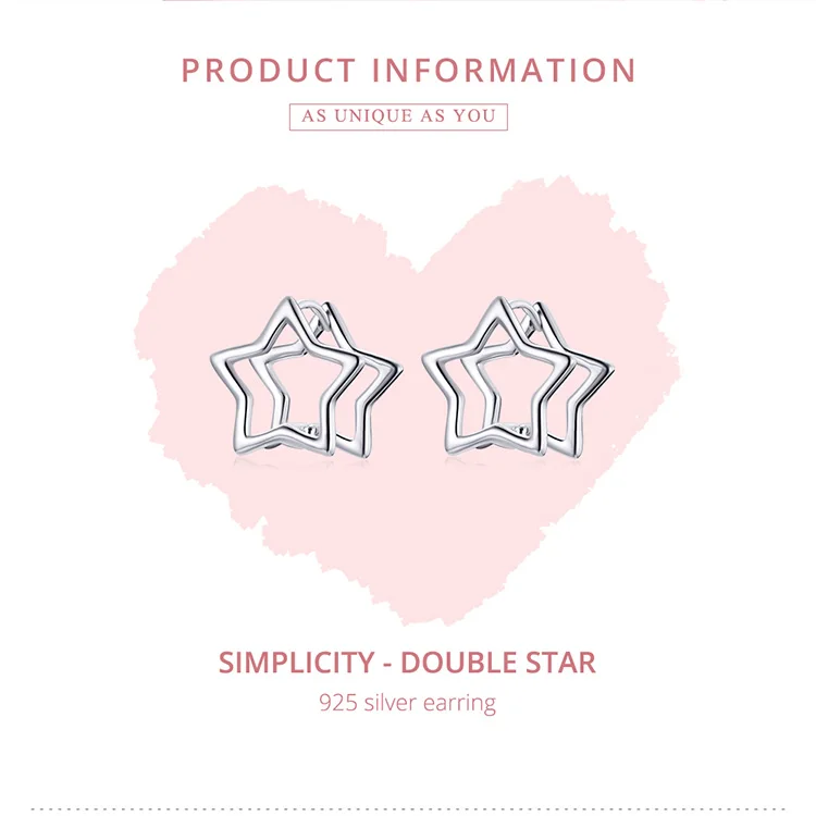 Женские серьги-гвоздики в виде двух сердец и звезд, из серебра 925 пробы