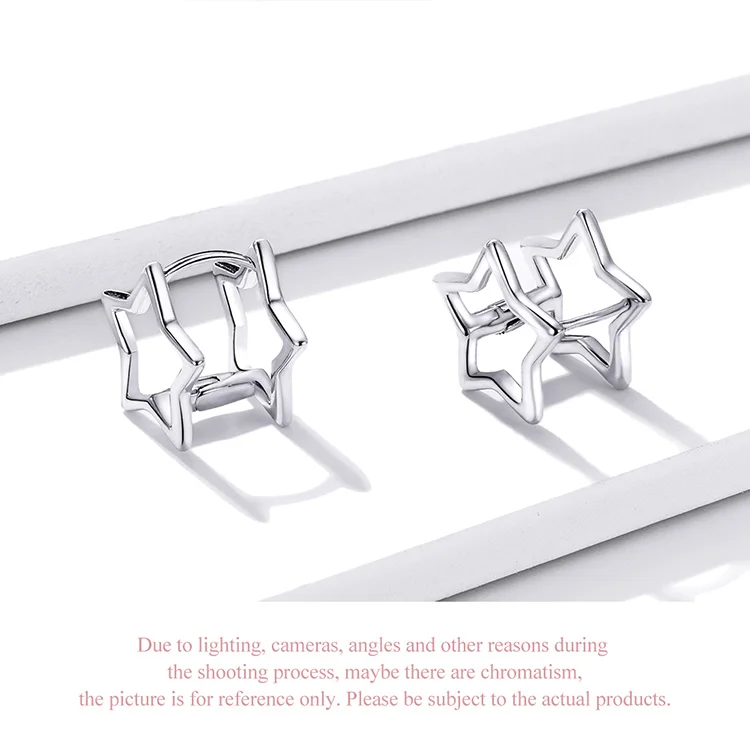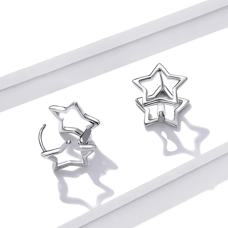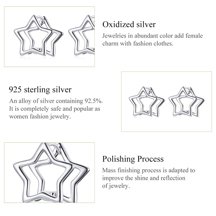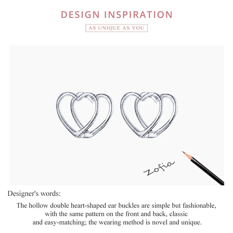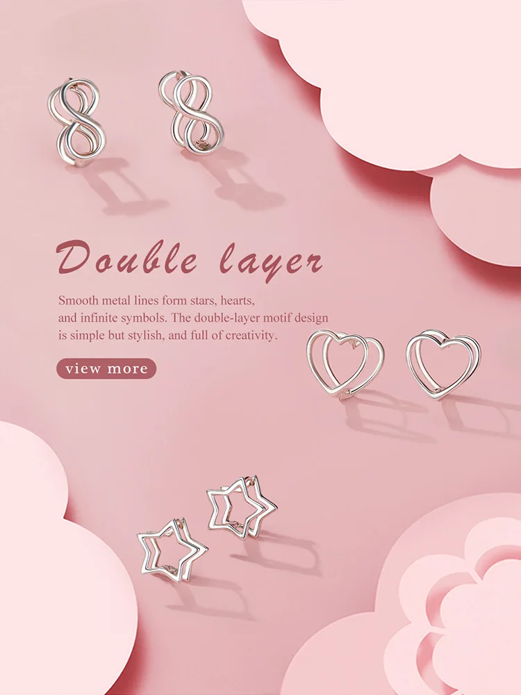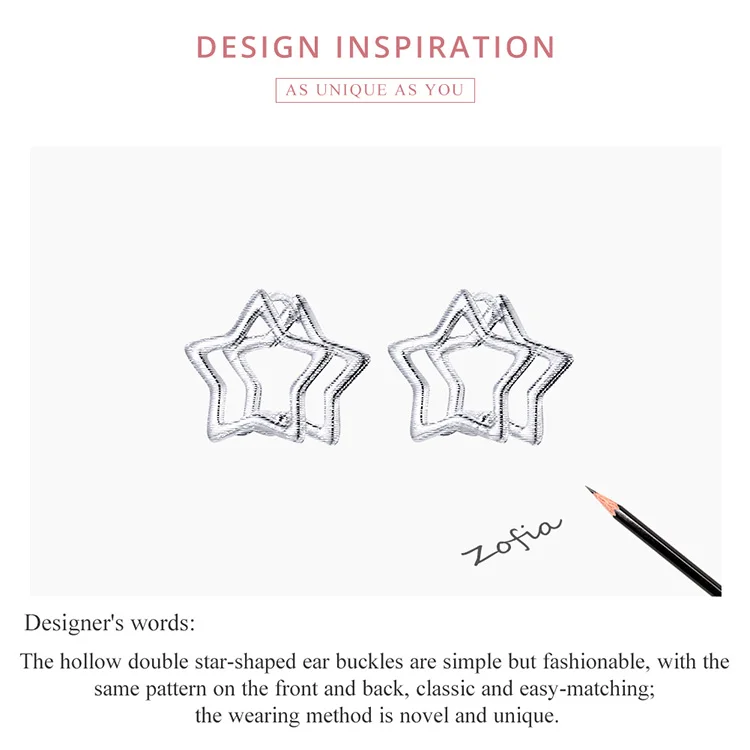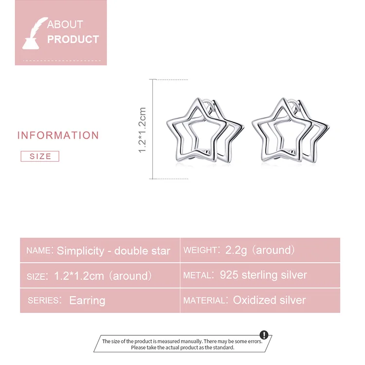 Женские серьги-гвоздики в виде двух сердец и звезд, из серебра 925 пробы