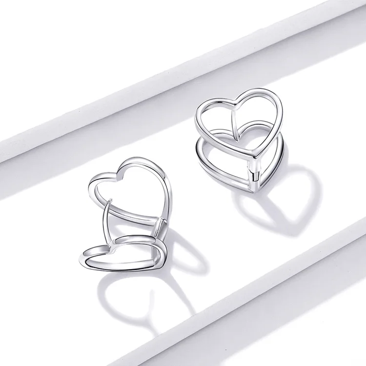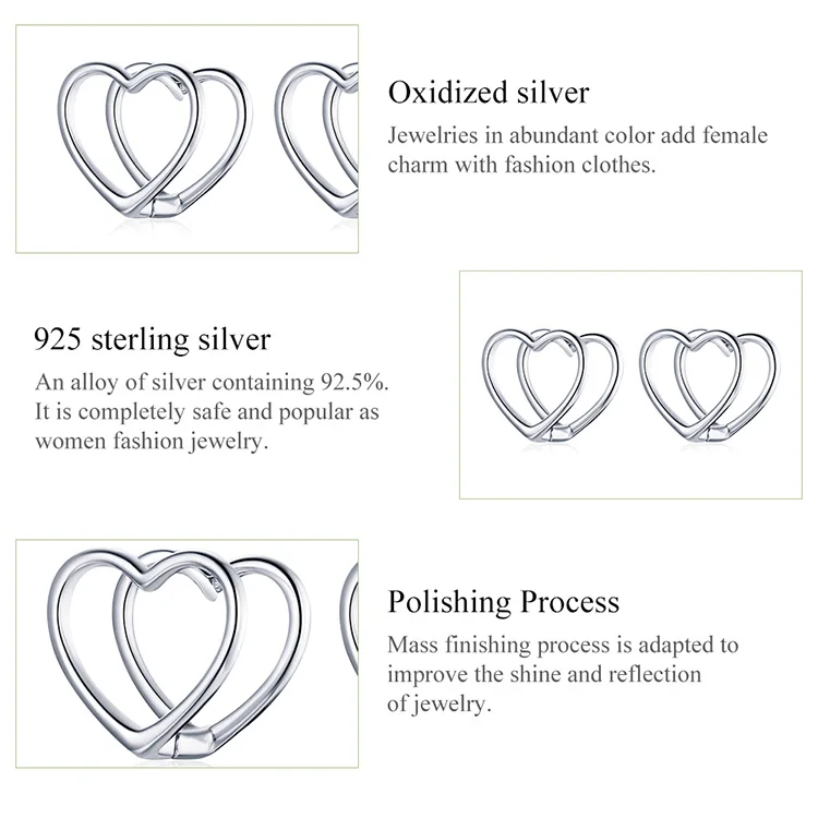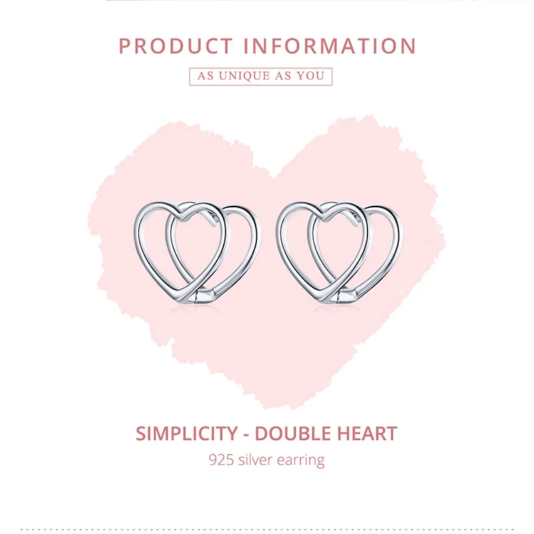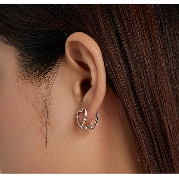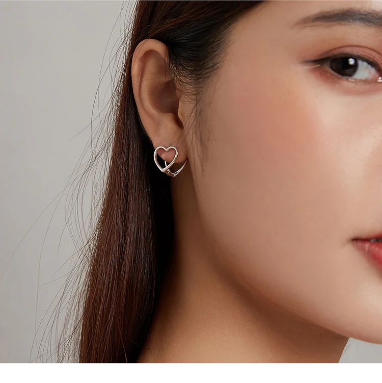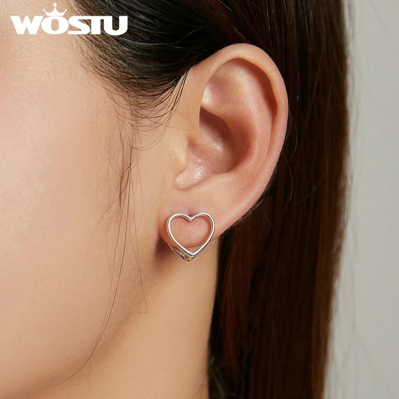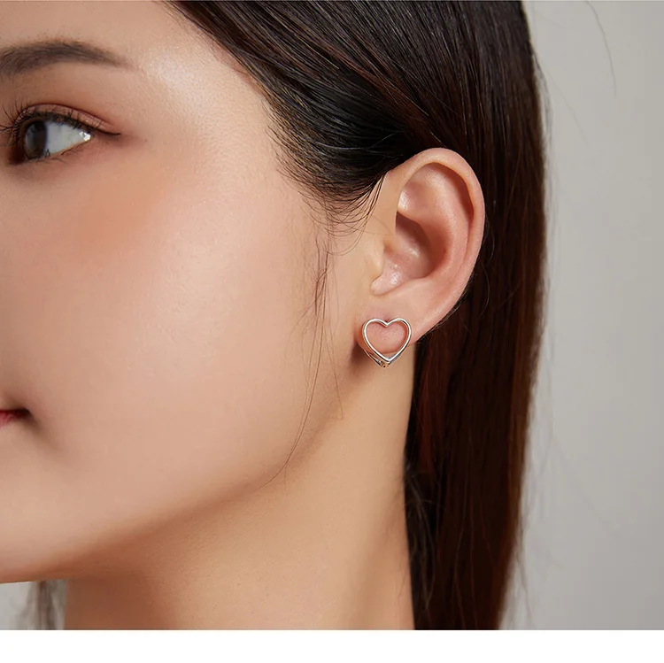 Женские серьги-гвоздики из серебра 925 пробы, с полым сердцем, CQE1174