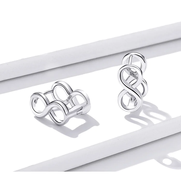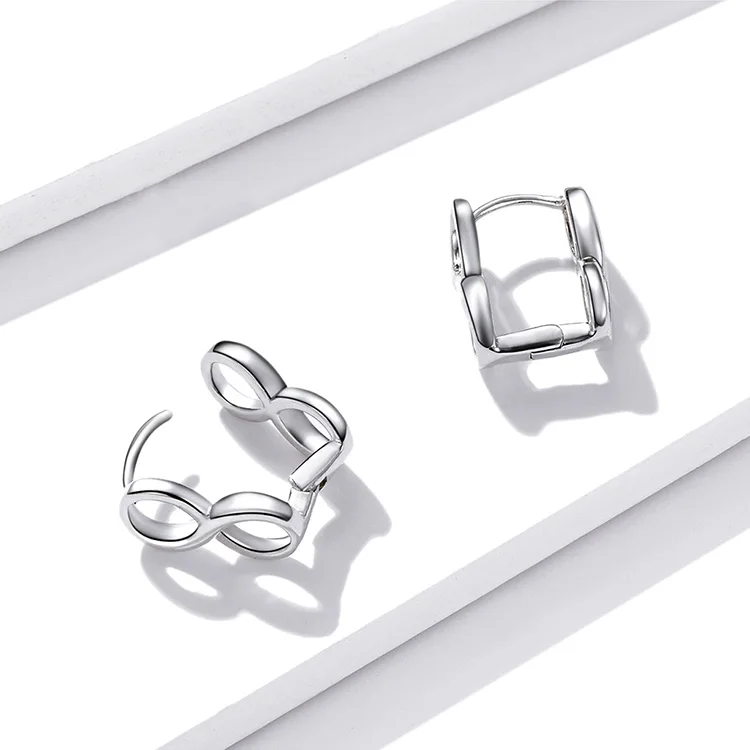 Серьги-кольца женские квадратные из серебра 925 пробы, с пряжкой, C...