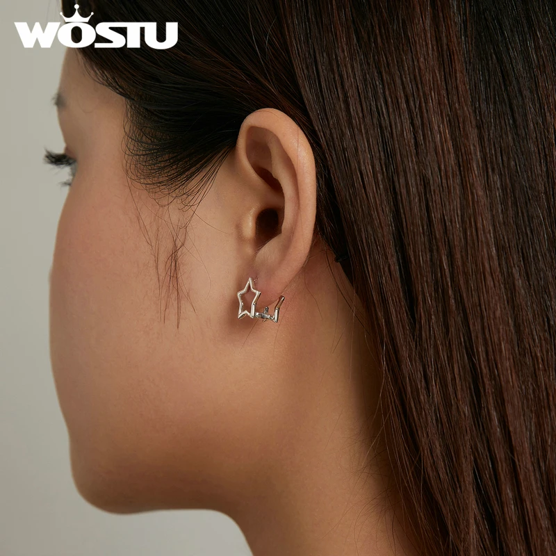 WOSTU 925 стерлингового серебра асимметричные серьги-гвоздики с тре...