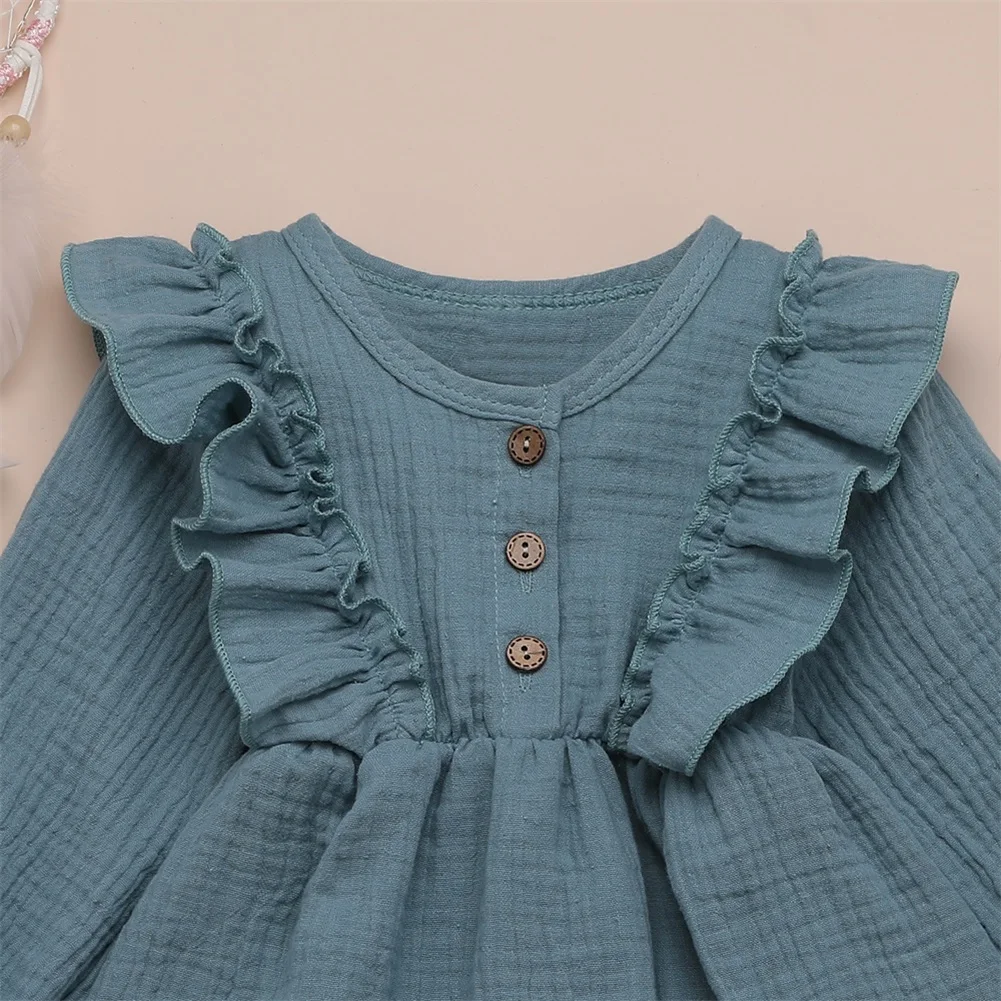 Весенне-осенняя одежда для малышей, детское Хлопковое платье для маленьких девочек, повседневное праздничное платье с длинным рукавом, Однотонный сарафан