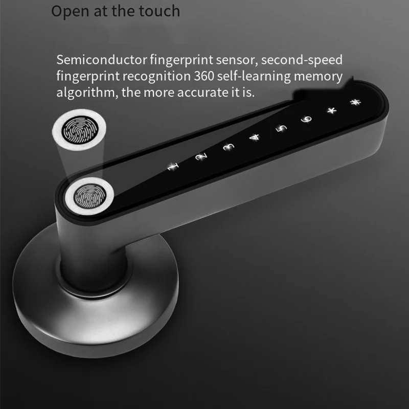 Простая установка:Нет шнура и нет профессиональной необходимости. Подходит для большинства дверей с рычажным замком и подходит как для левой, так и для правой ручки. Простота в эксплуатации:Вы можете не только разблокировать дверь с помощью отпечатка пальца или кода, который вы установите, но также можете открыть дверь с помощью приложения, очень умный и удобный. Промышленная безопасность:Ваш отпечаток пальца уникален в мире, что гарантирует безопасность без сомнений. Используется технология полупроводников и биологических характеристик, которая позволяет избежать отпечатков пальцев. Более того, изготовлен из прочного цинкового сплава, его качество надежное. Одношаговый доступ:Эргономичный дизайн, легко для вас, чтобы разблокировать дверь в течение 1 секунды, положив на нее отпечаток пальца. Он будет блокироваться для вас автоматически, сохраняя Вас и Вашу домашнюю безопасность все время. Энергосберегающий дизайн:Больше не беспокойтесь о загрязнении или потере денег. Со встроенной литиевой батареей, он используется для года после полной зарядки в течение 30 минут. (зарядный интерфейс находится в конце ручки.) Универсальный замок:Соответствие стандартам большинства рычажных замков, оснащенных сумкой с винтами и защелкой (60 мм), вы можете зафиксировать его на своей двери, толщина которой составляет 35-55 мм.