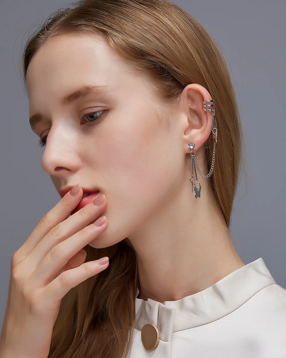 Клипсы-бабочки в стиле панк для женщин и девушек, ушные крючки, кли...