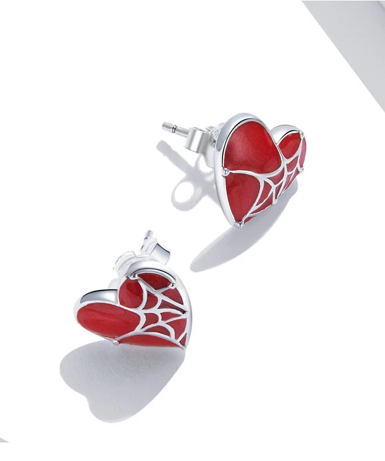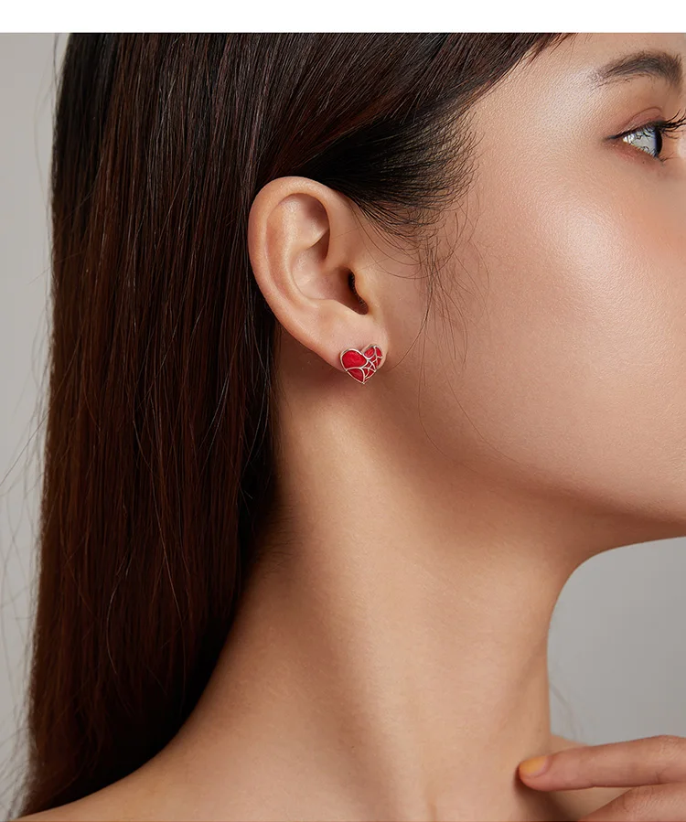 Женские серьги-гвоздики из серебра 925 пробы, с красной эмалью