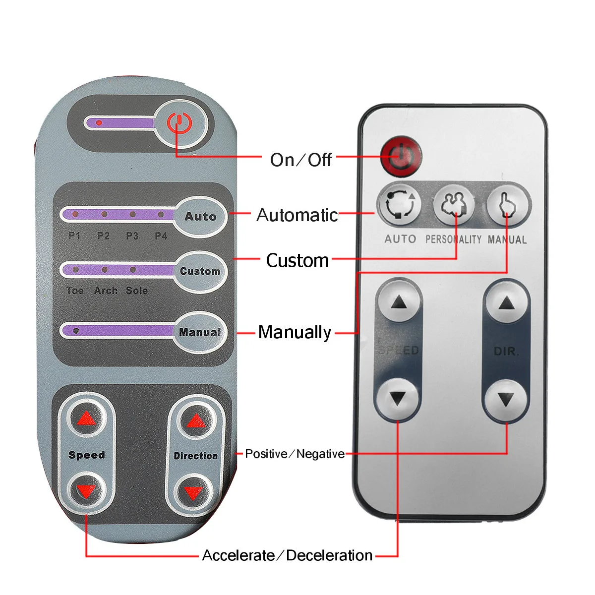 Массажер для ног имеет 3 уровня скорости-высокий средний и низкий, с легко доступной и простой в использовании панелью управления или пультом дистанционного управления, вы можете настроить массаж для правильного давления и скорости.