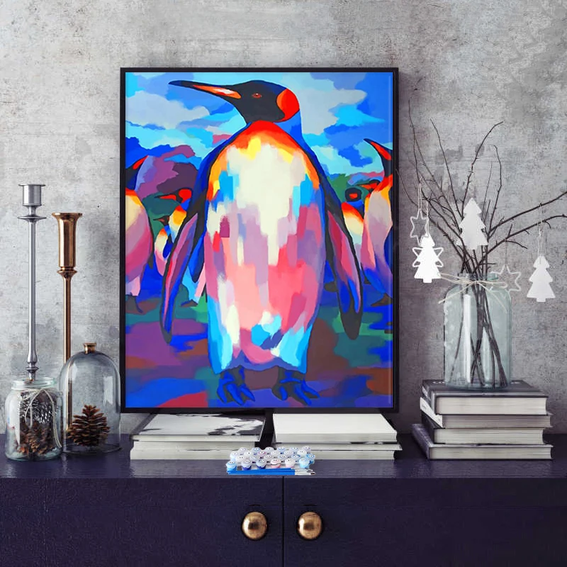 Набор для рисования по номерам на холсте Пингвин, с рамкой