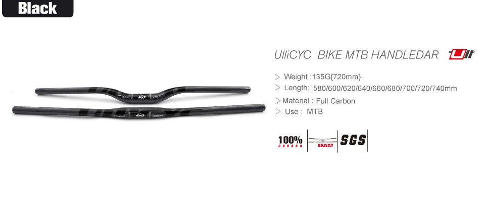 Полностью карбоновый горный велосипедный руль Ullicyc 3K, глянцевый черный, плоскийподъемный руль, запчасти для велосипеда 31,8*580-740 мм CB186