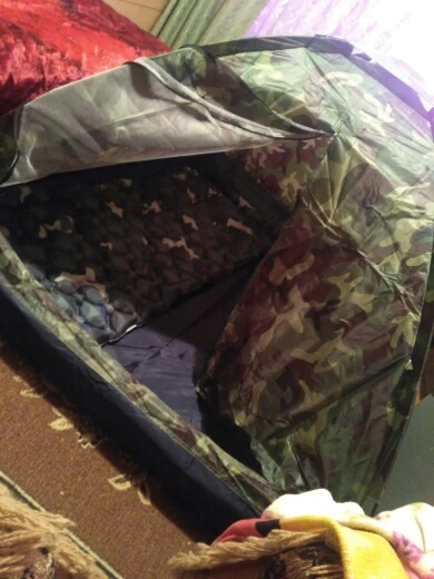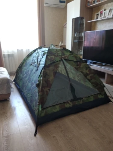 Палатка нормальная на одного человека и конечно без дождя. Жалко, что длина не 2 метра, а 1,8 поэтому на коврике и в спальнике только по диагонали. Очень лёгкая, не пахнет, хорошая вентиляция, спасёт ночью от комаров, легко собирается. За такую цену отлично. Принёс курьер домой.