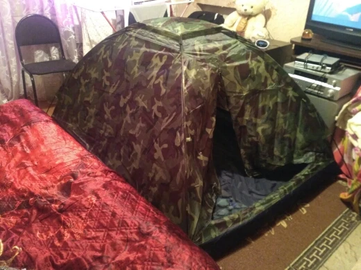 Классная палатка, вместительная! Первая сборка была в спешке, потому до конца не сообразила, но наловчиться-за минутку будет раскладываться! Курьер домой принёс, очень удобно.