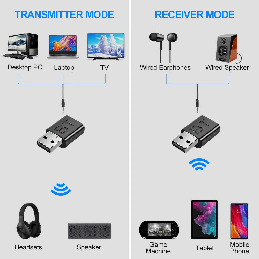 USB Bluetooth-совместимый адаптер 5,0 Dongle HiFi аудиоприемник передатчик стерео 3,5 мм AUX для ПК автомобильный тв беспроводной адаптер