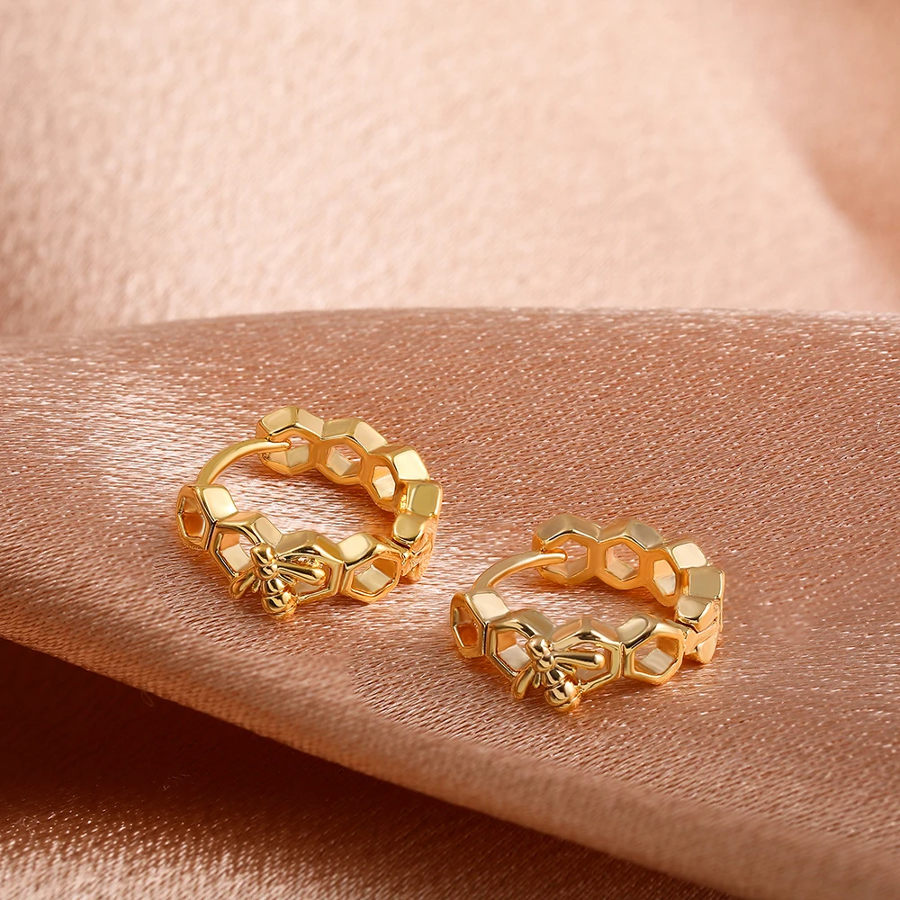 Золотистые и Серебристые полые геометрические сотовые серьги-кольца для женщин модные маленькие пчелиные ушные пряжки бусины CZ серьги ювелирные изделия