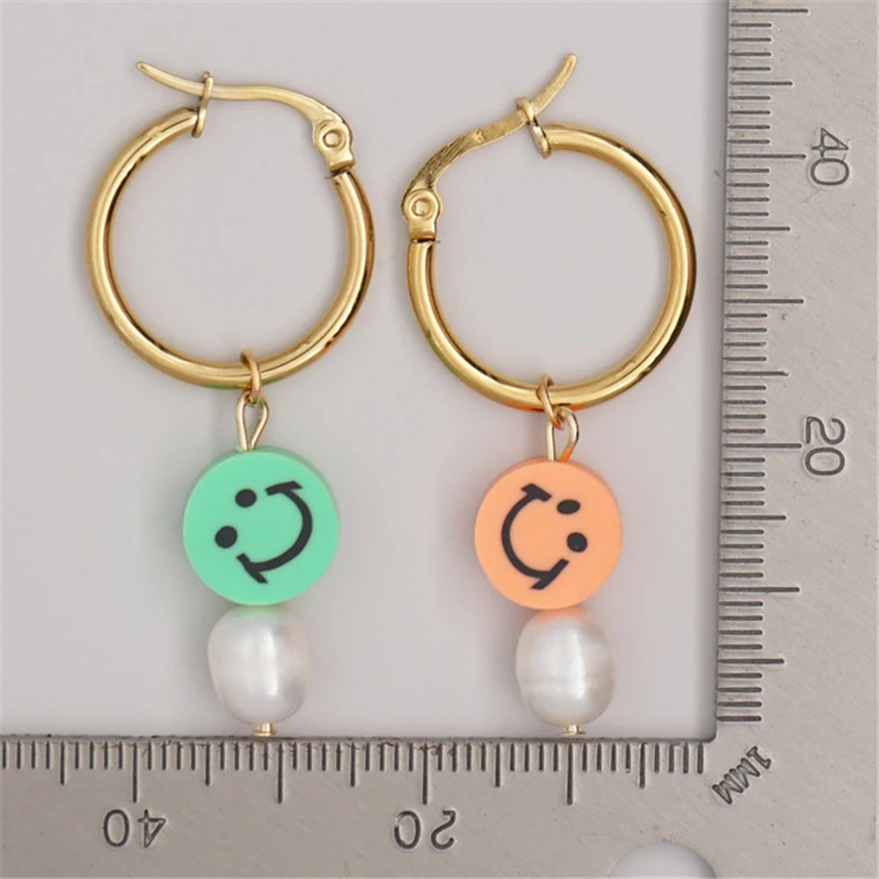 Женские Висячие серьги в стиле бохо со смайликом, уникальные висячие серьги с фруктовым жемчугом, модные серьги-кольца в стиле панк, ювелирные изделия