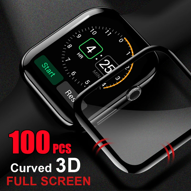 3D изогнутое закаленное стекло, защита экрана, полное покрытие, пленка, защита для Apple Watch, 38 мм, 40 мм, 42 мм, 44 мм, серия 6, 5, 4, 3, 2, 100 шт.