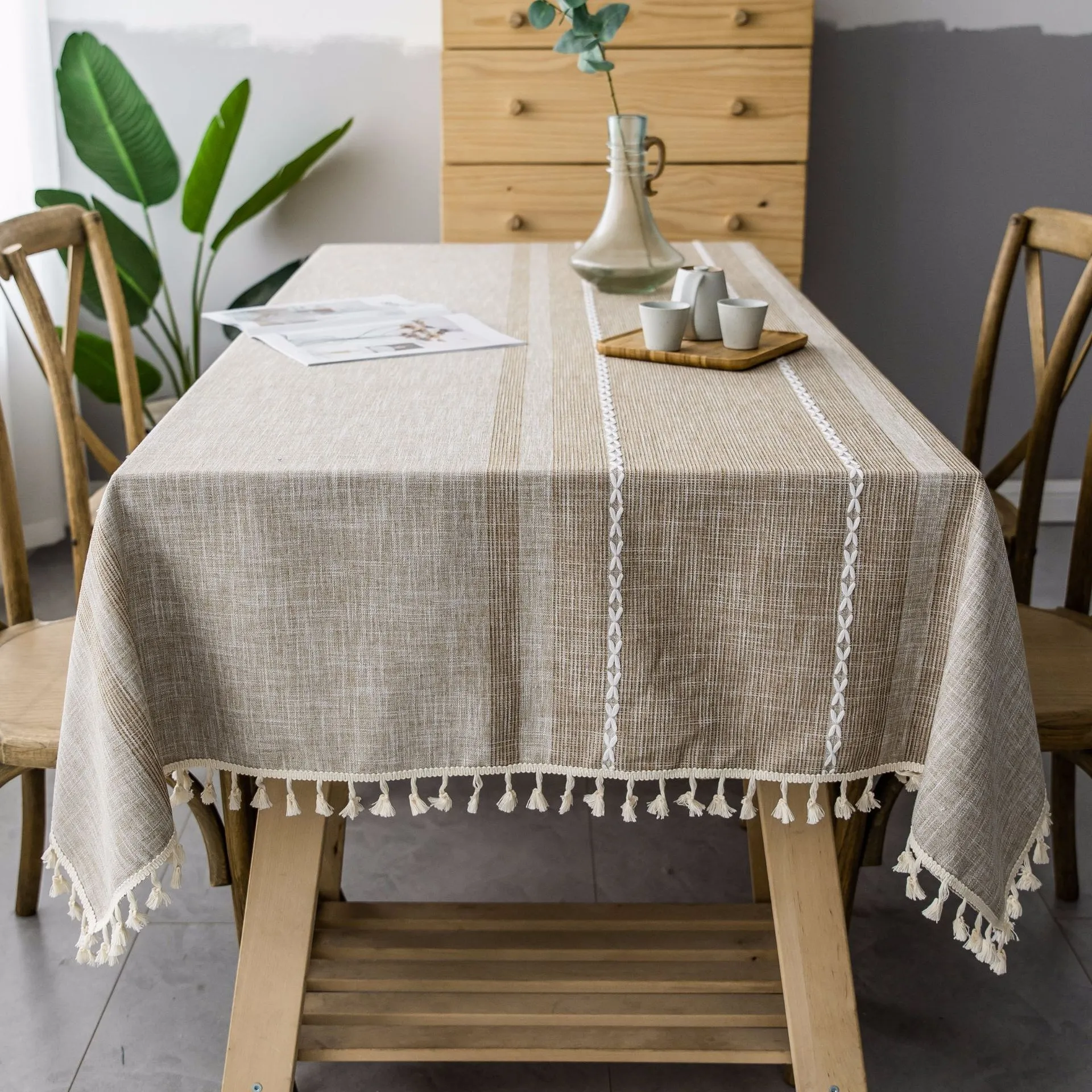 Скатерть на стол, прямоугольная льняная скатерть из хлопка с кисточ...
