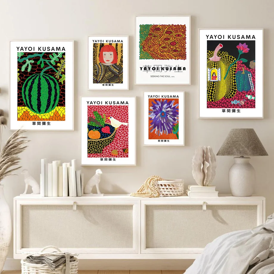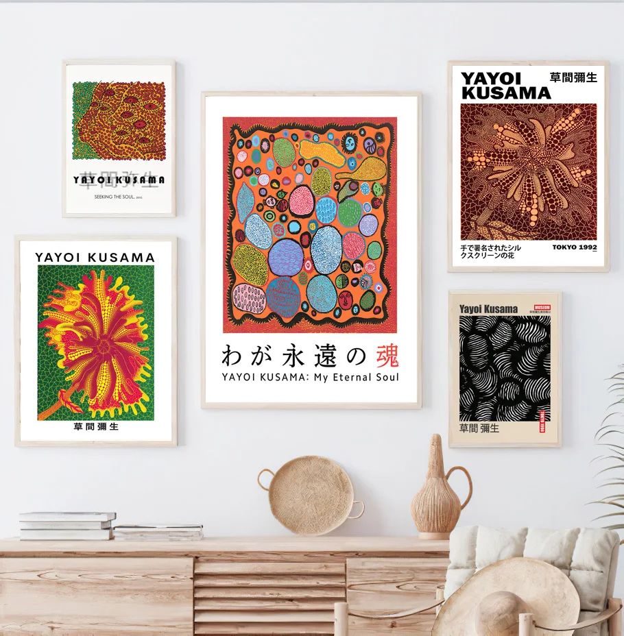 Абстрактная Yayoi Kusama постеры с изображением морской волны и цветов и глаз Настенная картина на холсте настенные картины для декора гостиной