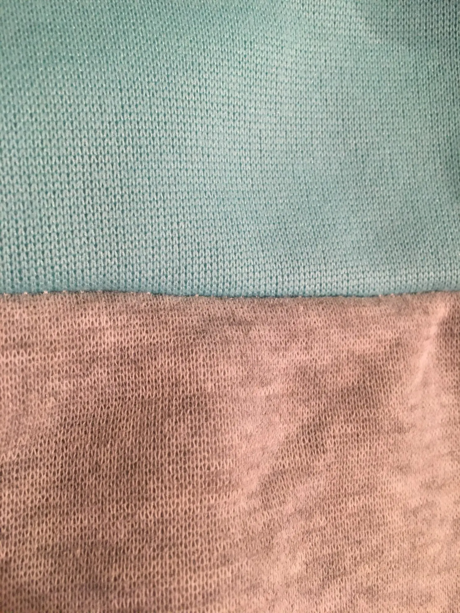 tecido leve mas bem quente. o roxo das mangas é mais vivo que da foto.