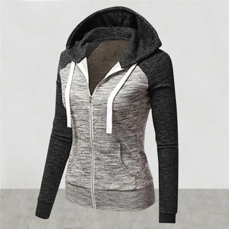 Женская толстовка с капюшоном, Повседневная приталенная куртка на молнии, спортивный пуловер с длинным рукавом, Осень-зима, 2021
