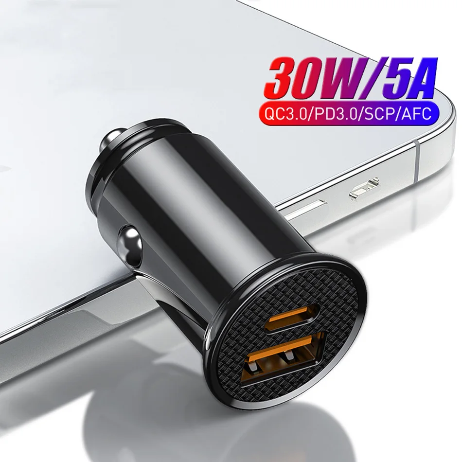Автомобильное зарядное устройство PD QC 3,0 для iPhone 11, 12 Pro Max, X S, Huawei P40, P30, Xiaomi 5A, 30 Вт, Type-C, Быстрая автомобильная зарядка, зарядное устройство USB для Samsung