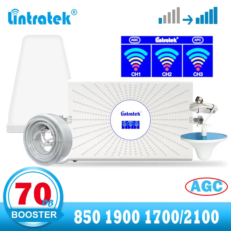 Lintratek 850 1900 17002100 Усилитель сотового сигнала CDMA B5 850 МГц шт B2 2g 3g 4g усилитель повторителя AWS B4 70dB AGC Tri