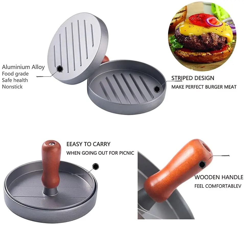 форма для котлет Форма для бургеров и мяса, 9 см, круглый пресс для гамбургеров, форма из алюминиевого сплава для гамбургеров, мяса и говядины, форма для гриля, формы для котлет кухонные аксессуары