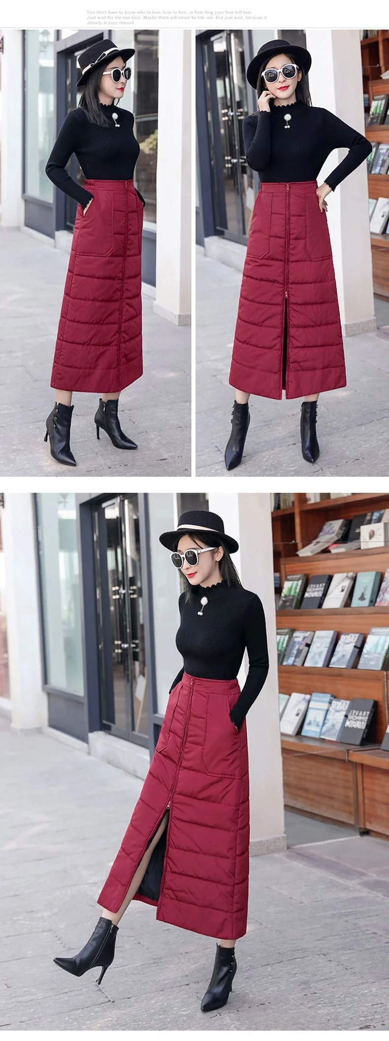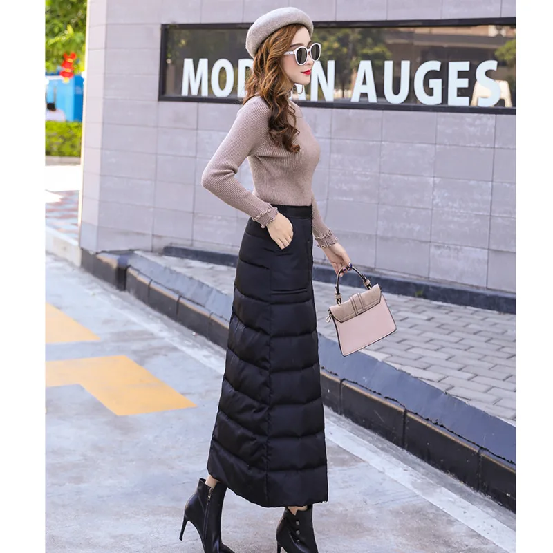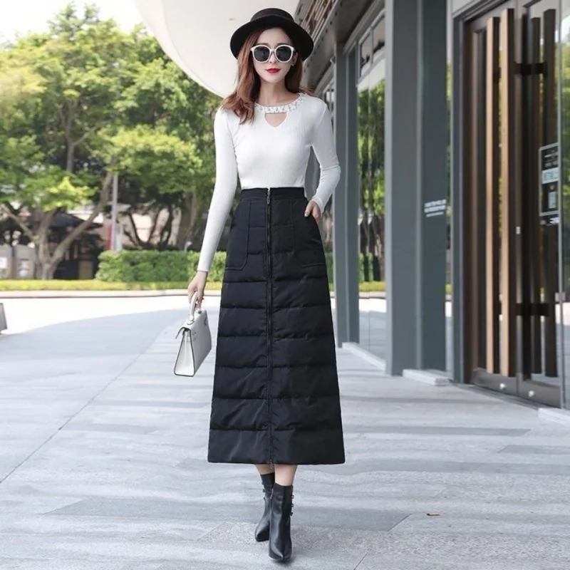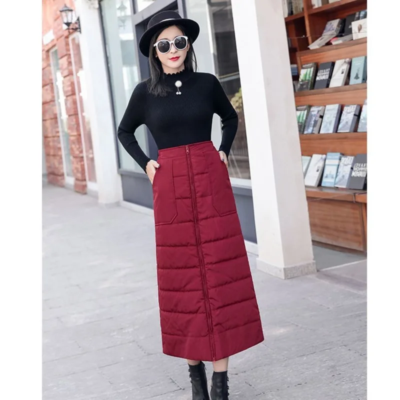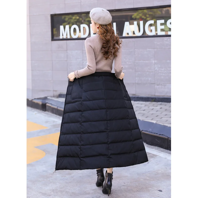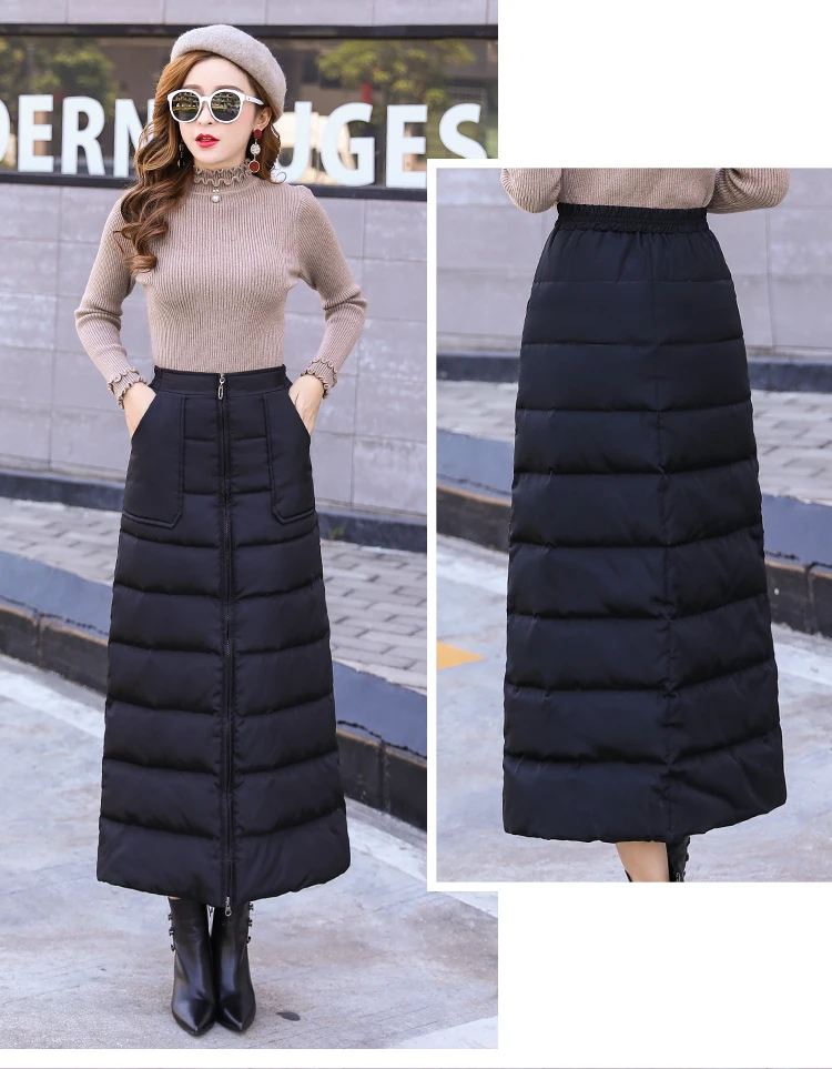 Юбка женская зимняя, ветрозащитная, длинная, черная, на молнии, M-5XL