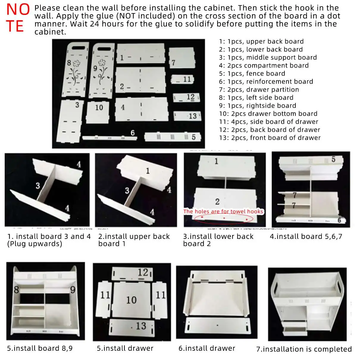 Посылка включает в себя:1 х шкаф для хранения2 x приклеивающиеся крючки(Только шкаф для хранения и крючки. Другие вещи, показанные на фотографиях, не включены.)