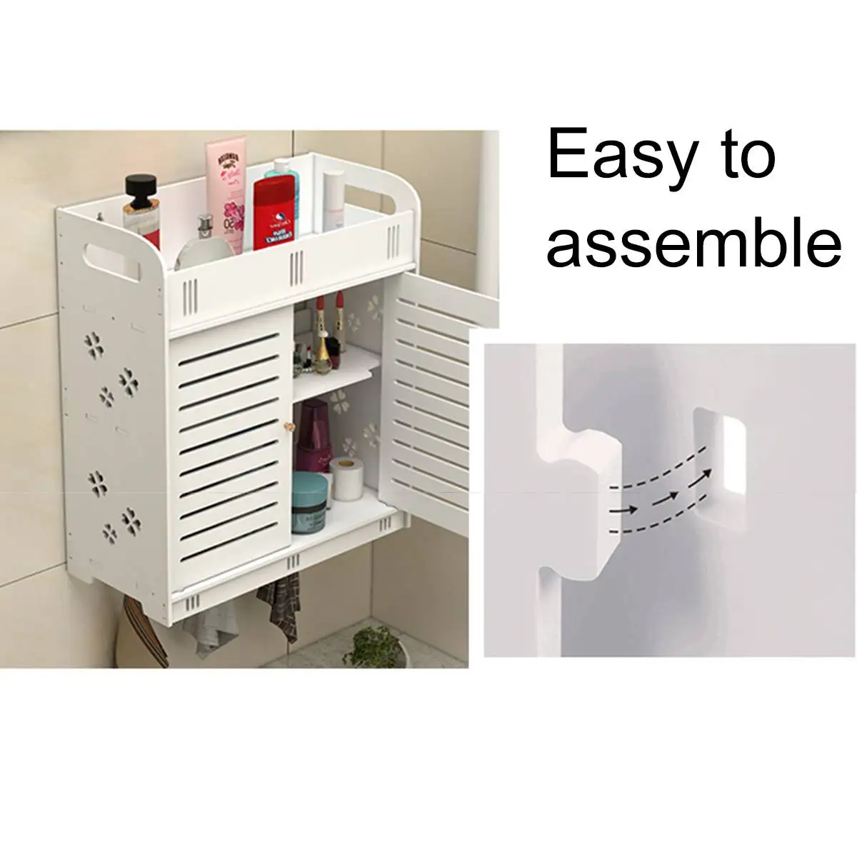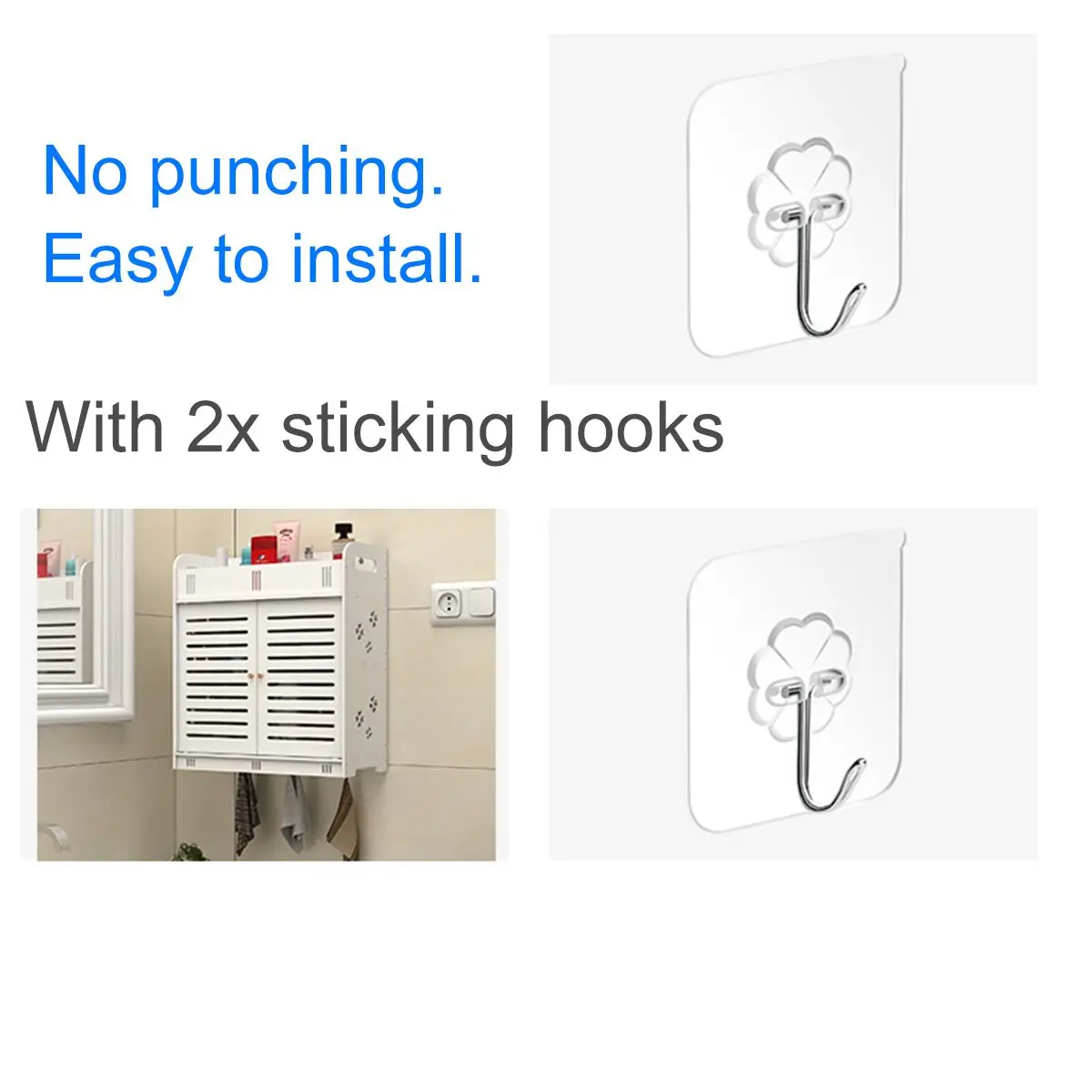 Особенности:◆Изготовлен из высококачественного материала, влагостойкий, прочный.◆Идеальный шкаф для хранения косметики, шампуня и других туалетных принадлежностей. Также удобно для подвешивания полотенец.◆ Экономичное пространство, обеспечивает аккуратный и чистый вид для большинства ванных комнат или спальни.◆With прилипания крючки. Без штамповки. Легко устанавливается.