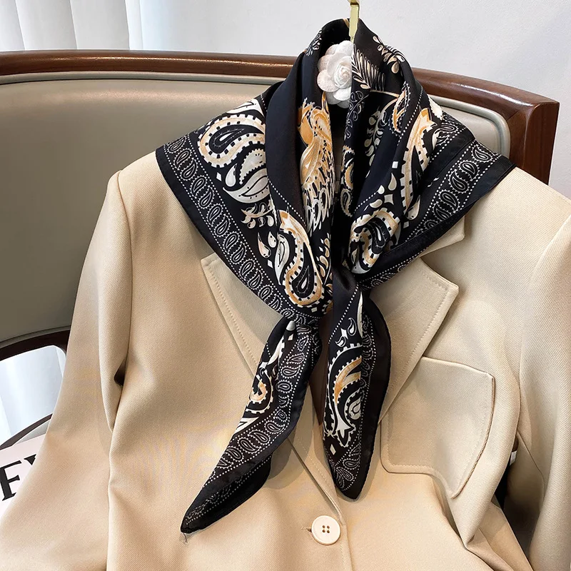 Роскошный брендовый Шелковый квадратный шарф для женщин, атласный шейный бандаж для волос, женский шейный платок, хиджаб, пляжные декоративные шарфы, женский платок