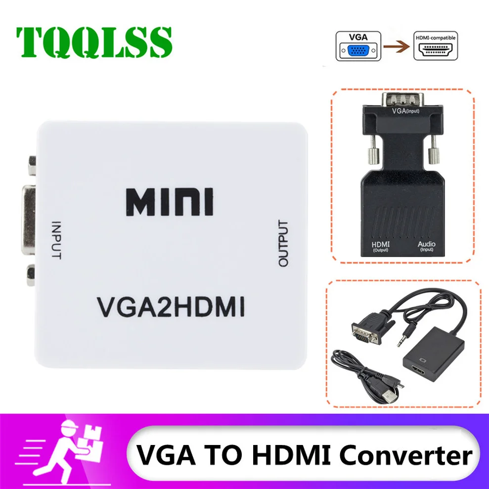 Конвертер VGA-HDMI-совместимый, портативный мини-видеоадаптер VGA2HDMI 1080P для ноутбуков, ПК, HD ТВ-проекторов, ТВ VGA2HDMI