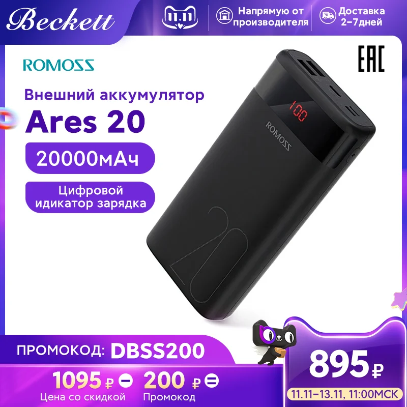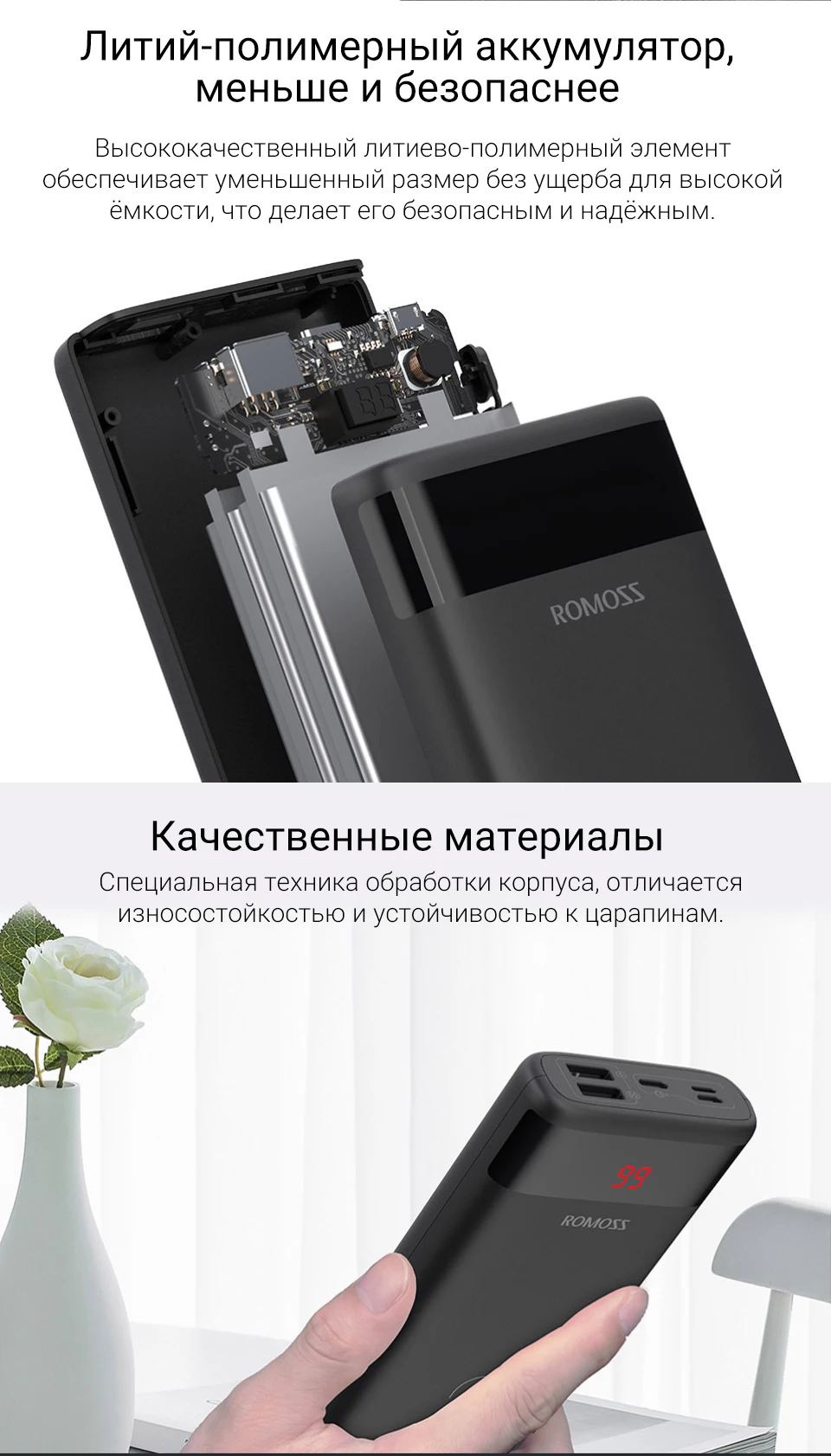 ROMOSS SW20 Pro 20000 мАч Повербанк Внешний Аккумулятор 18W Двухсто...
