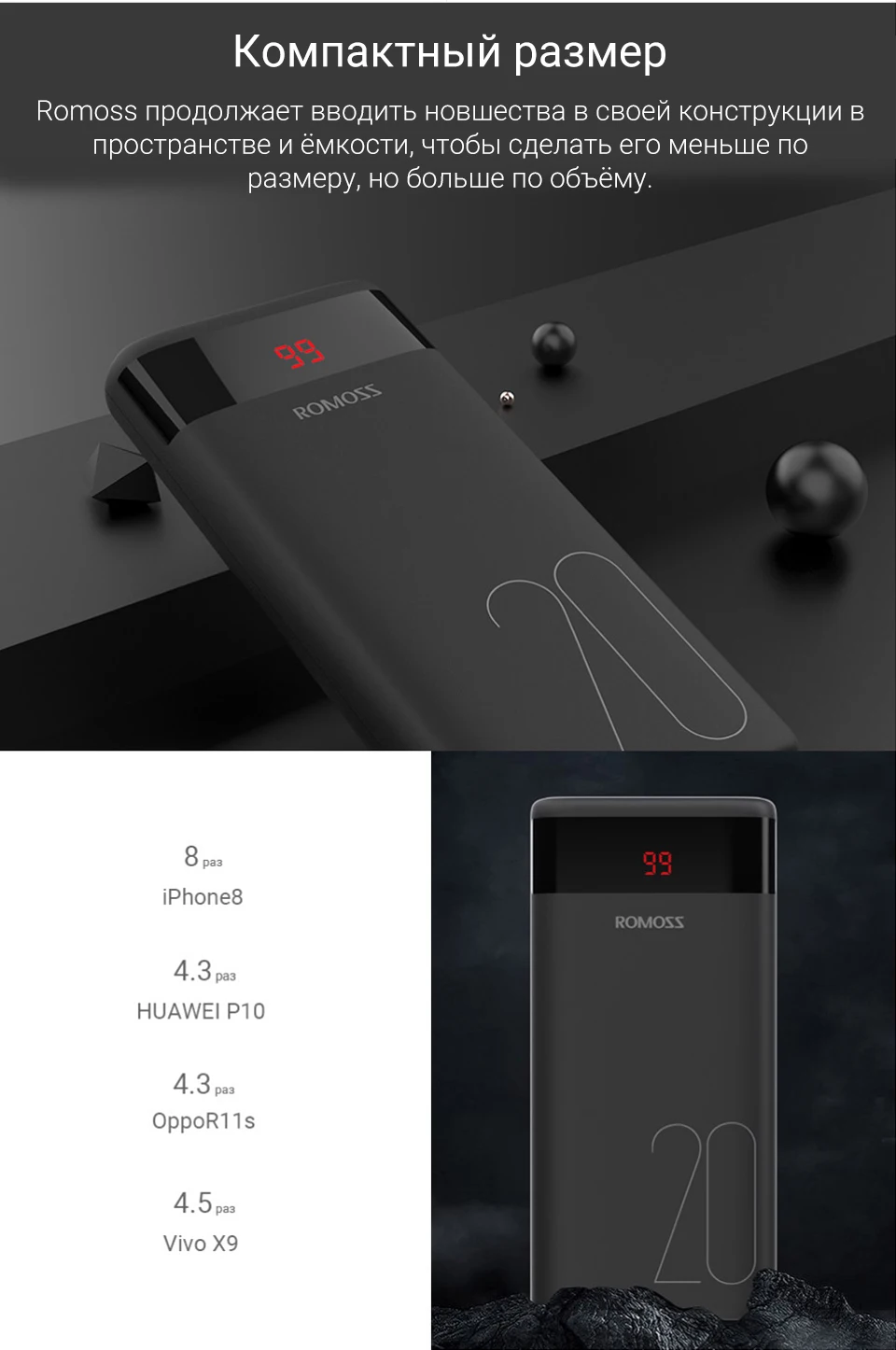 ROMOSS Ares 20 повербанк 20000мАч power Bank LED-дисплей для планше...
