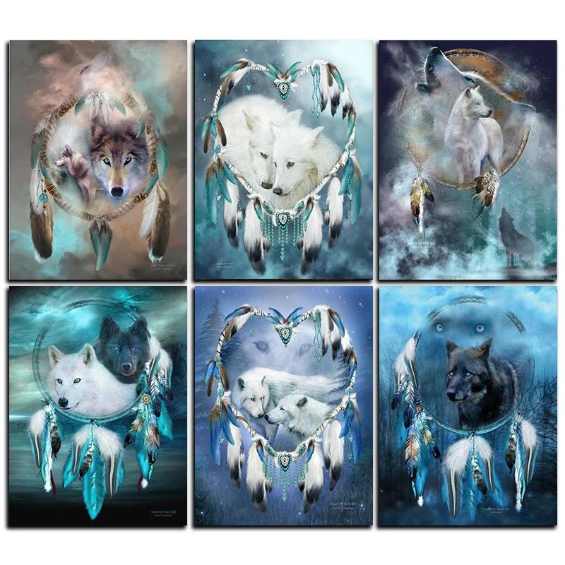 Алмазная живопись сделай сам, волк, 5D, квадратные алмазыкруглые алмазы, ворона, алмазная вышивка ручной работы, творчество Ловца снов, украшение