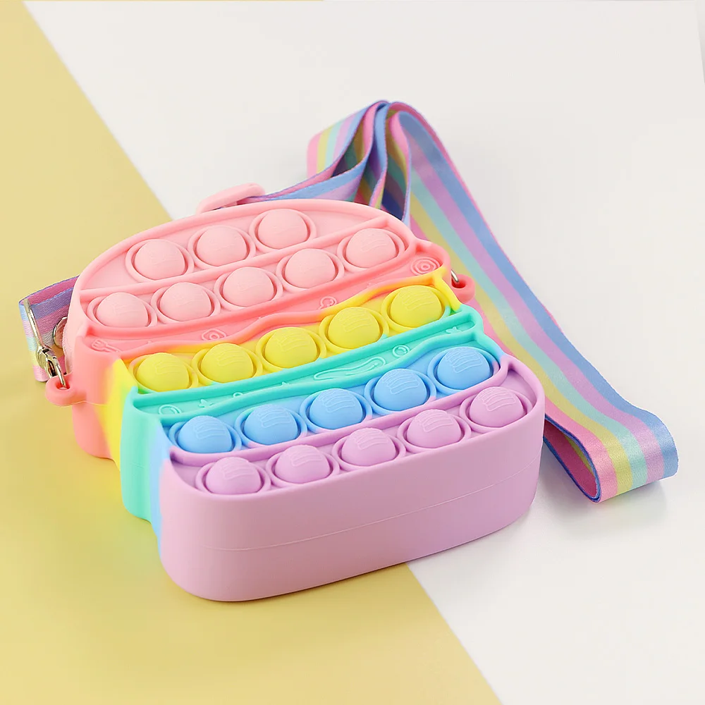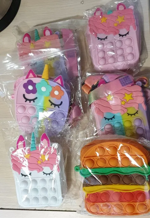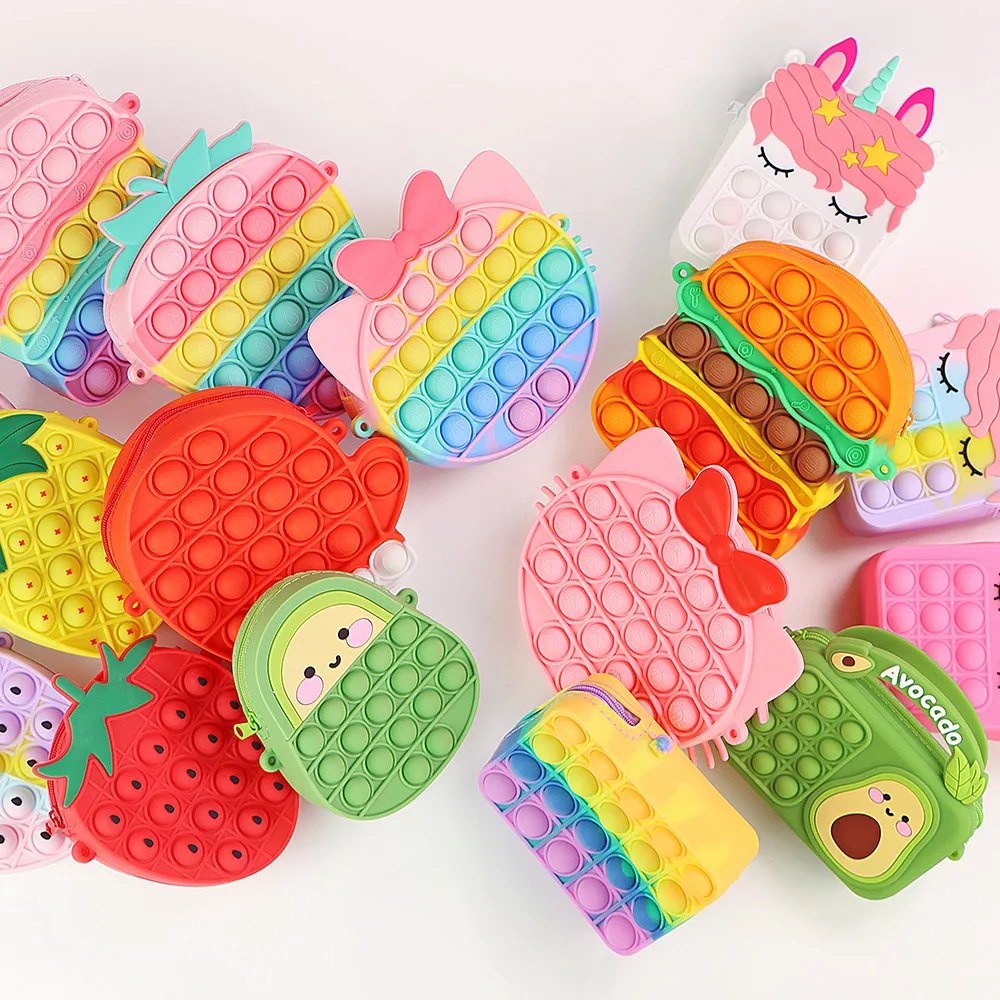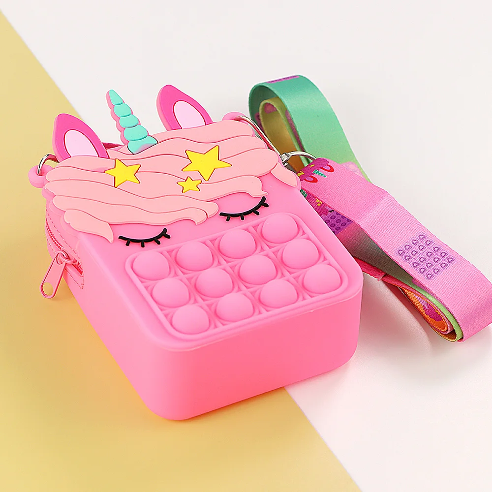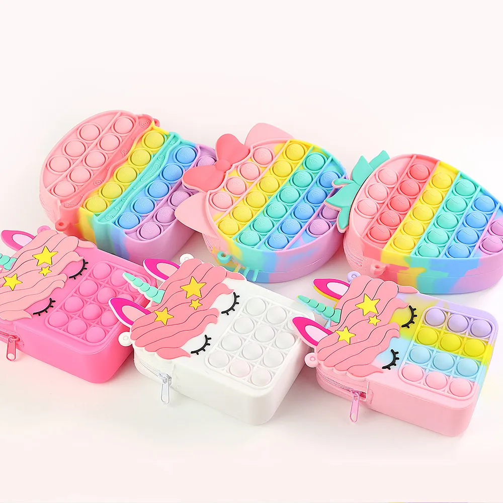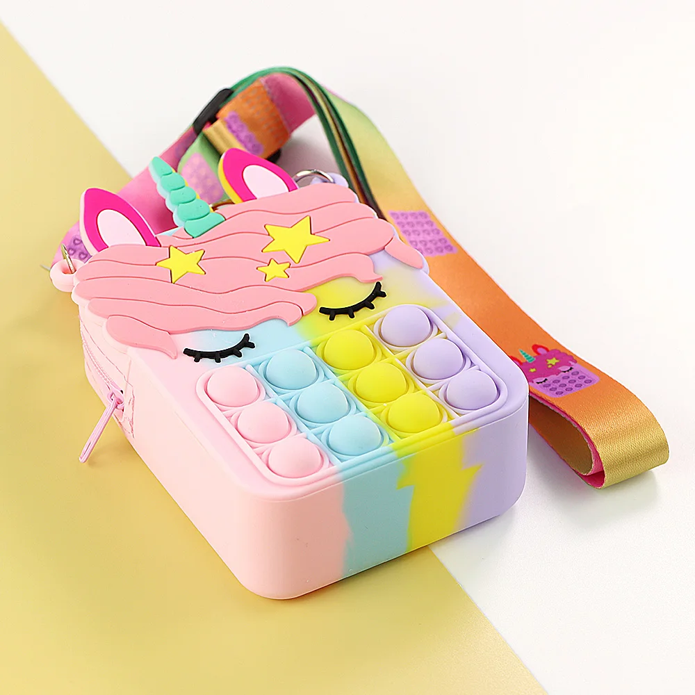 Игрушка-антистресс с пузырьками, игрушка, Радужный Единорог, кошелек для монет, Женская сумочка, простой силикагель, сумки через плечо для девочек и мальчиков, подарок