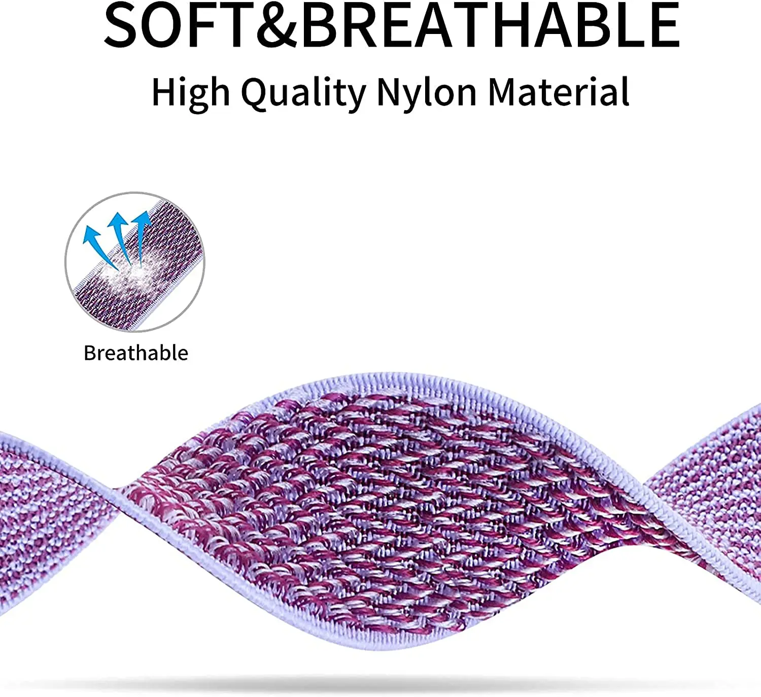 【Adjustable】это растягивающиеся браслеты на запястье с тонким слайдером из нержавеющей стали, чтобы можно было регулировать длину по вашему желанию. Не слишком туго или слишком свободно, нет чувства сдержанности. (Данная модель подходит для запястья 4,5-9,5 дюймов)【Воздухопроницаемый нейлоновый материал 】 нейлоновая петля изготовлена из дышащего нейлона, мягкого и гибкого, прочного и прочного, дышащего и легко моющегося, удобного и не раздражающего кожу, не натирает на запястье. Не оставляет следов на вашем запястье, легче плотно прилегает к коже запястья, отслеживает ваши показатели фитнеса.【Простая установка и съемка браслет поставляется с разъемными контактами на обоих концах, которые надежно фиксируются на смарт-часы. Легко устанавливается непосредственно и снимается за считанные секунды.