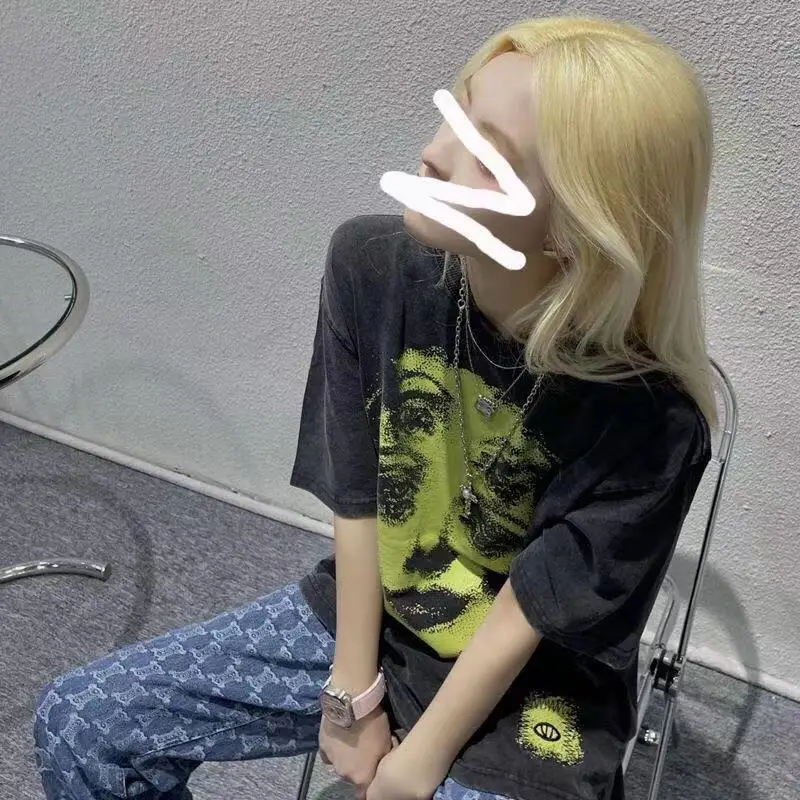 Футболка Y2k женская с графическим принтом лица, уличная одежда в с...