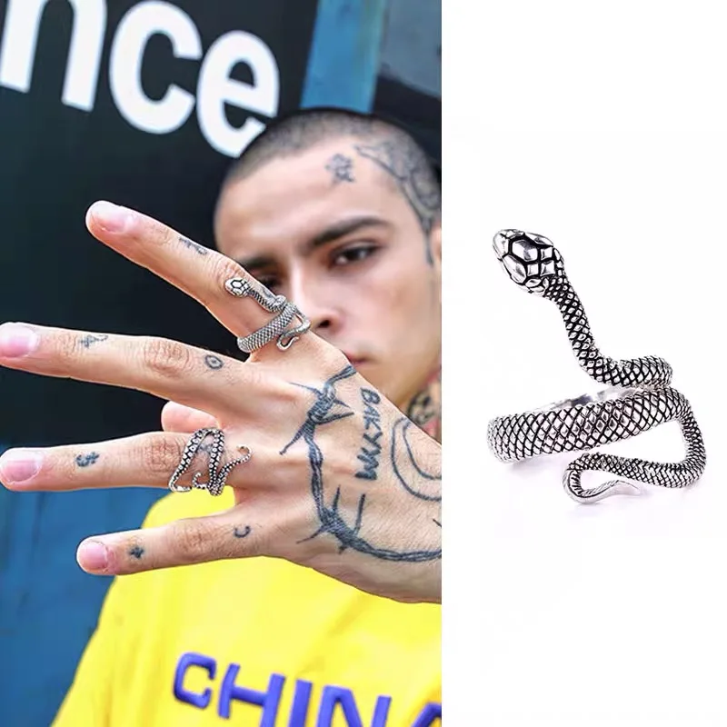 2021 Европейское Ретро панк огромное кольцо в виде змеи модное индивидуальное трехмерное регулируемое кольцо в подарок