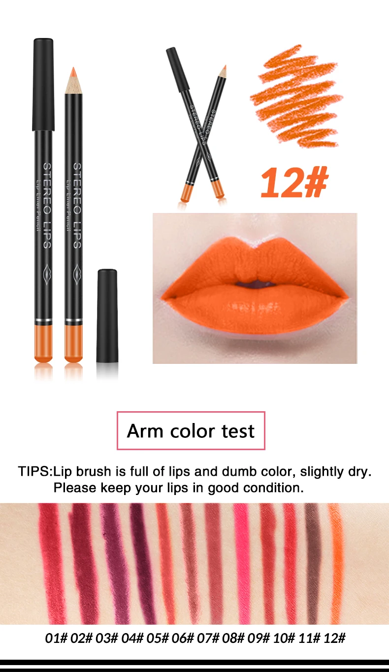 1 шт., Водостойкий карандаш для губ, 12 цветов