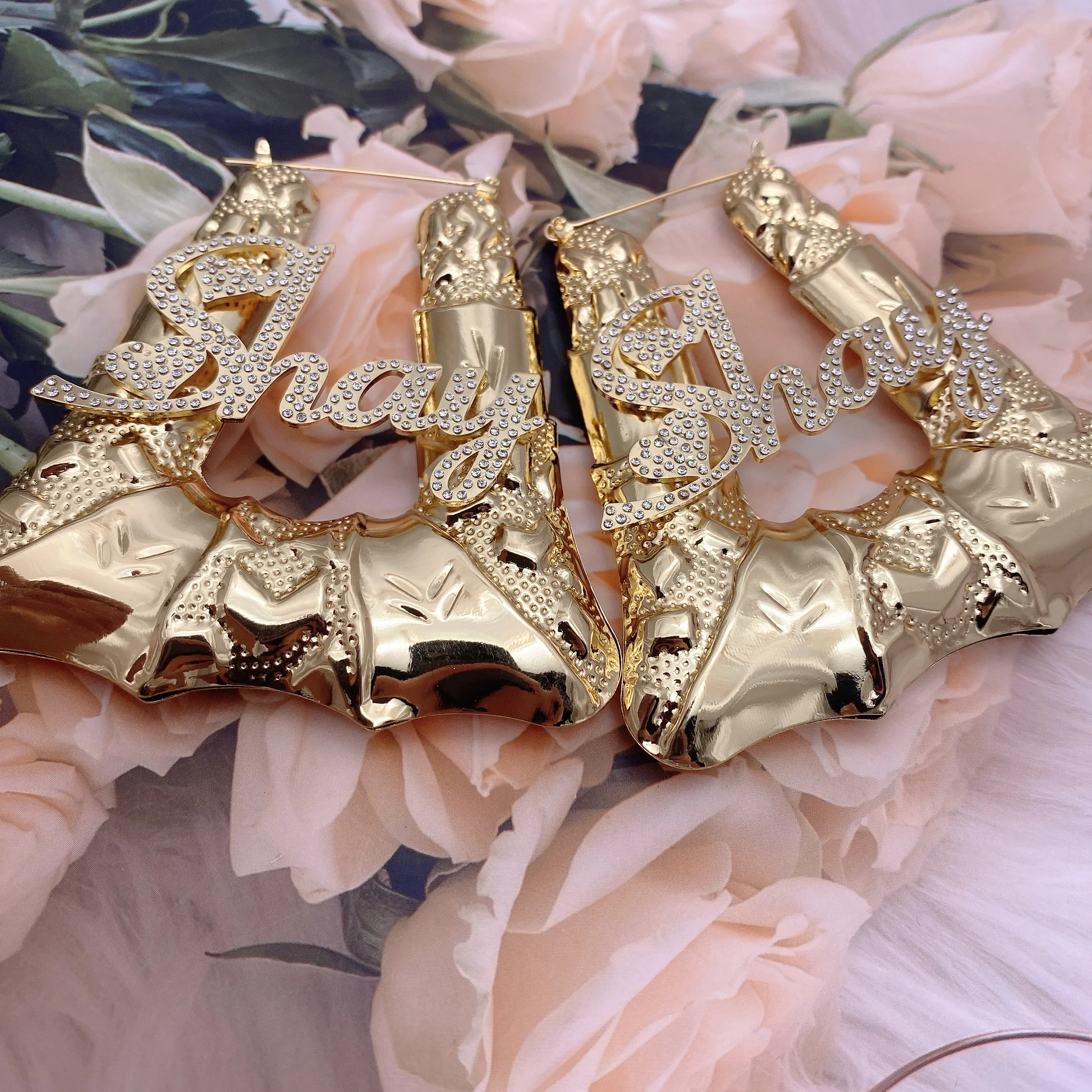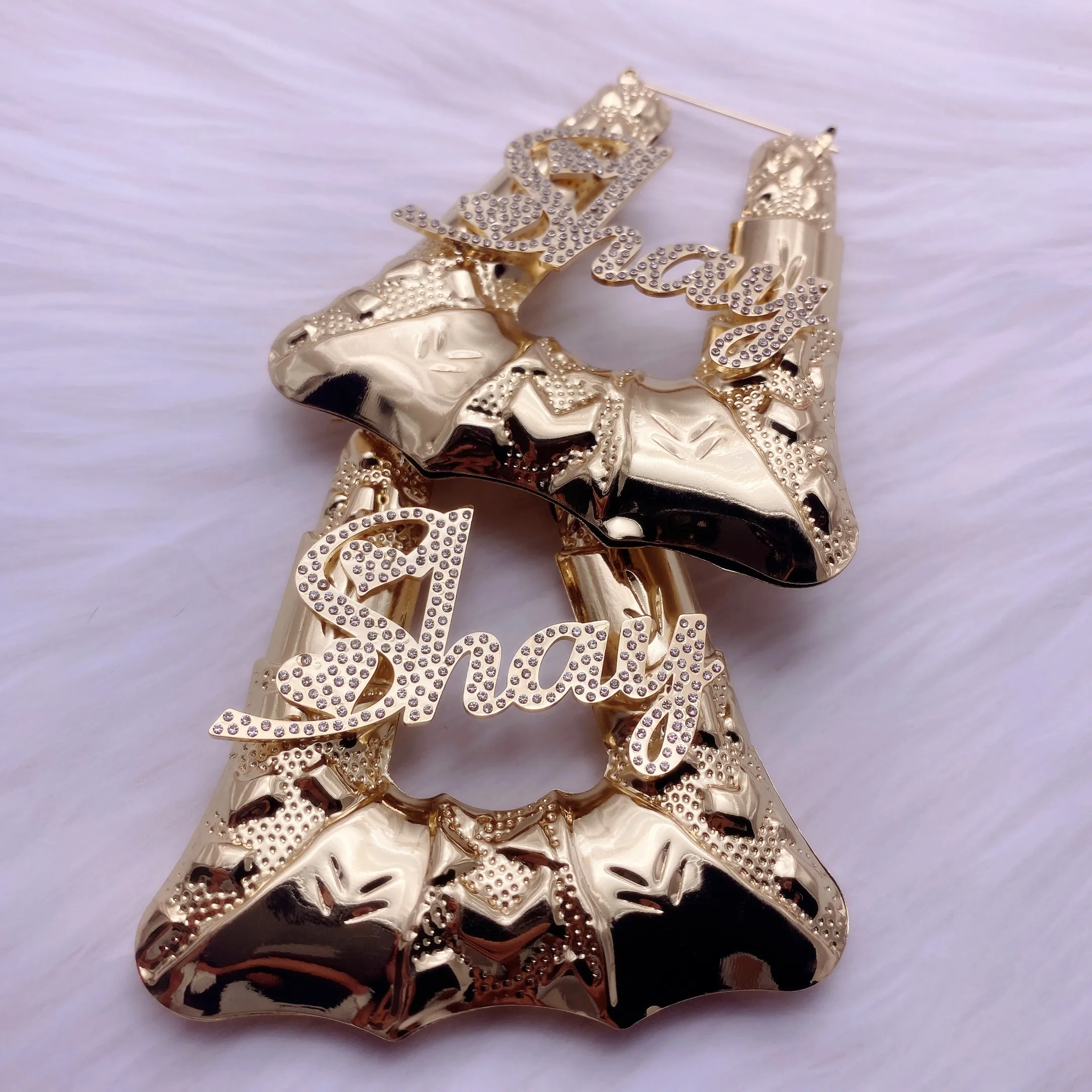 Большие круглые персонализированные модные серьги-гвоздики с именем...