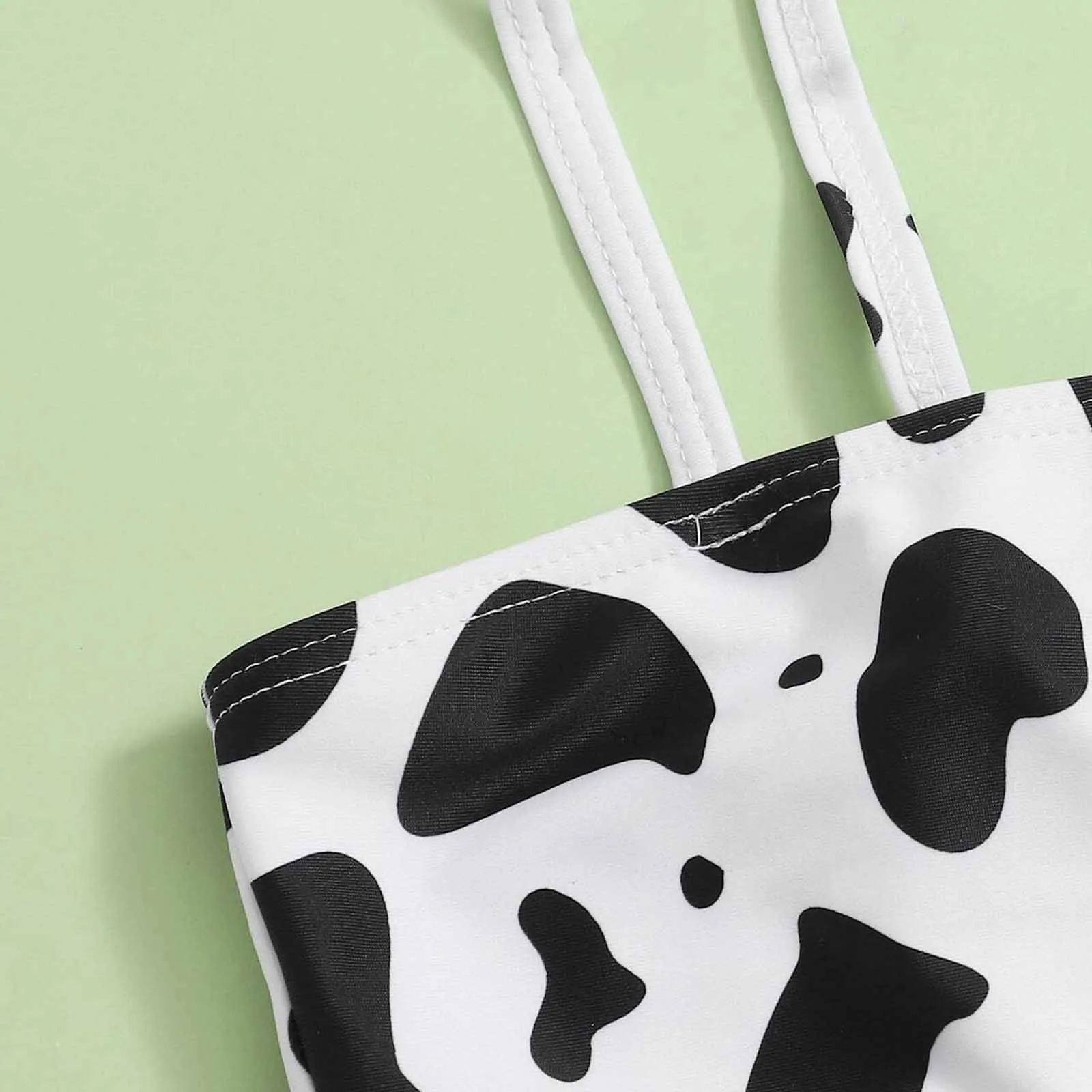 Купальник-тройка для девочек, милое летнее бикини с коровьим принто...