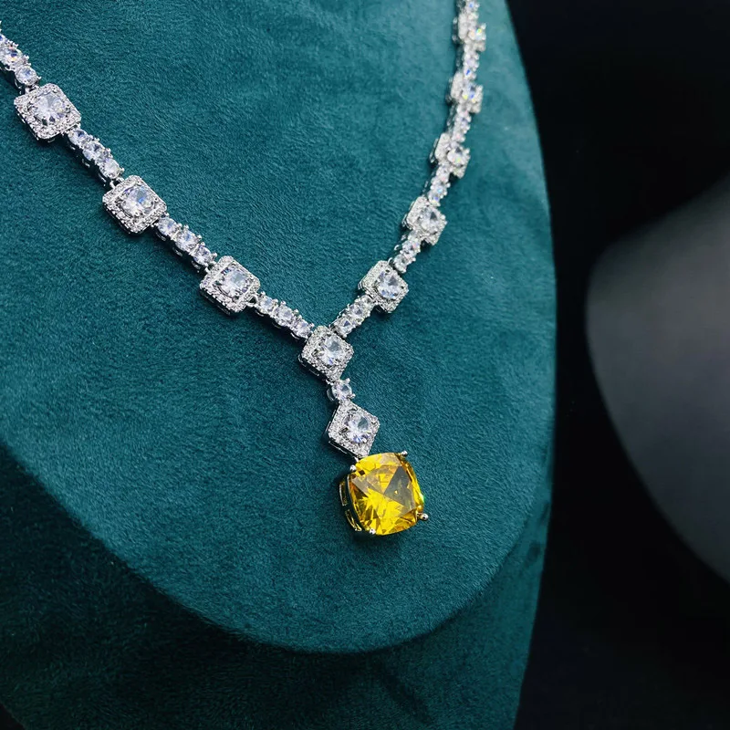 Комплект из 2 предметов HIBRIDE, колье и серьги квадратной формы желтого цвета с кубическим цирконием ААА, свадебное украшение бижутерия femme, N-370