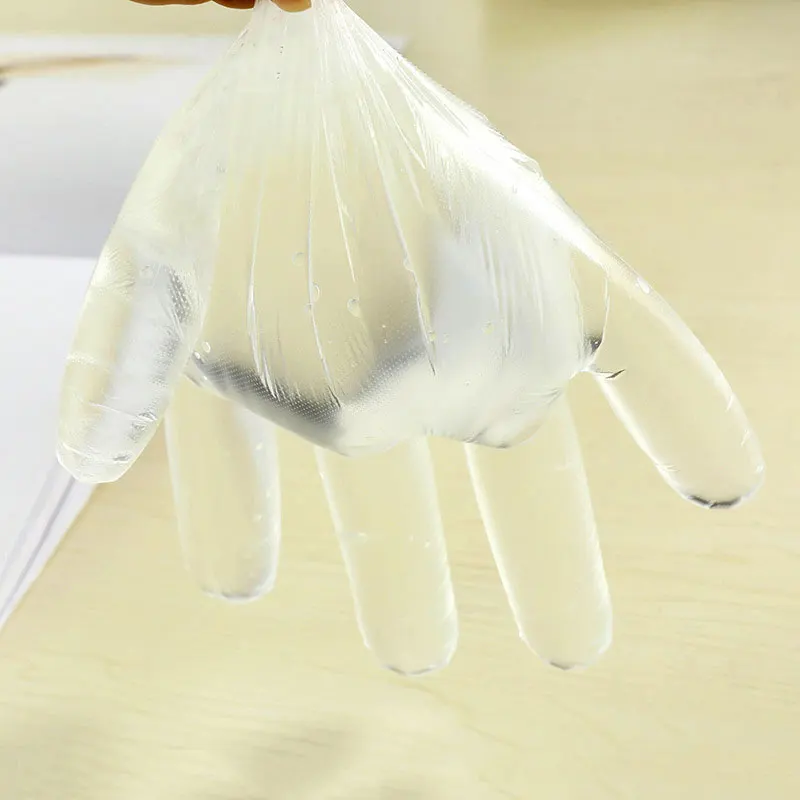 Одноразовые PE санитарные перчатки, очищенные из пищевых материалов без запаха PE. Он используется для пищевой промышленности, ухода за больными, кухни, приготовления пищи, работы по дому, окрашивания волос, кемпинга барбекю и т. д. и ресторанов нужно прикоснуться к еде руками