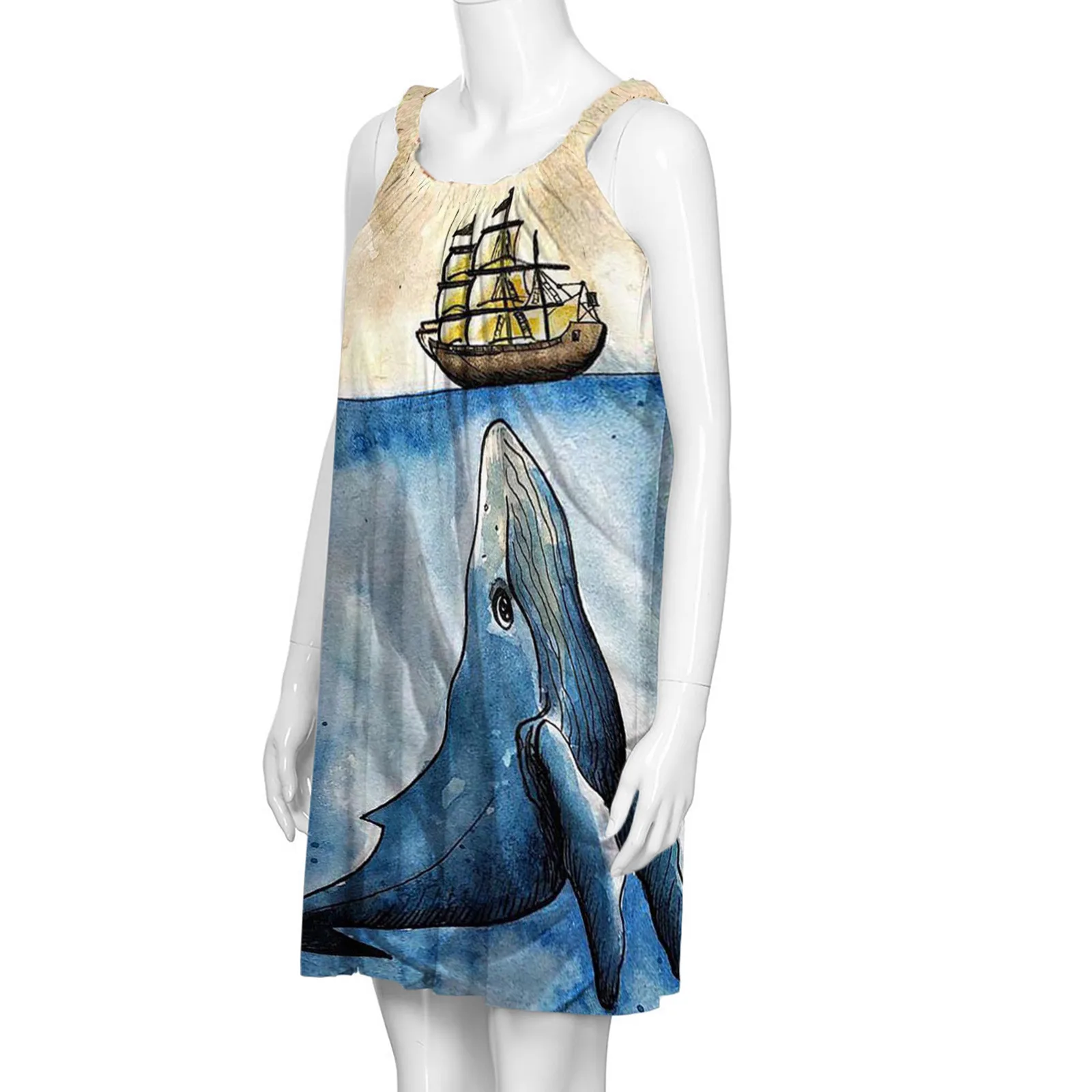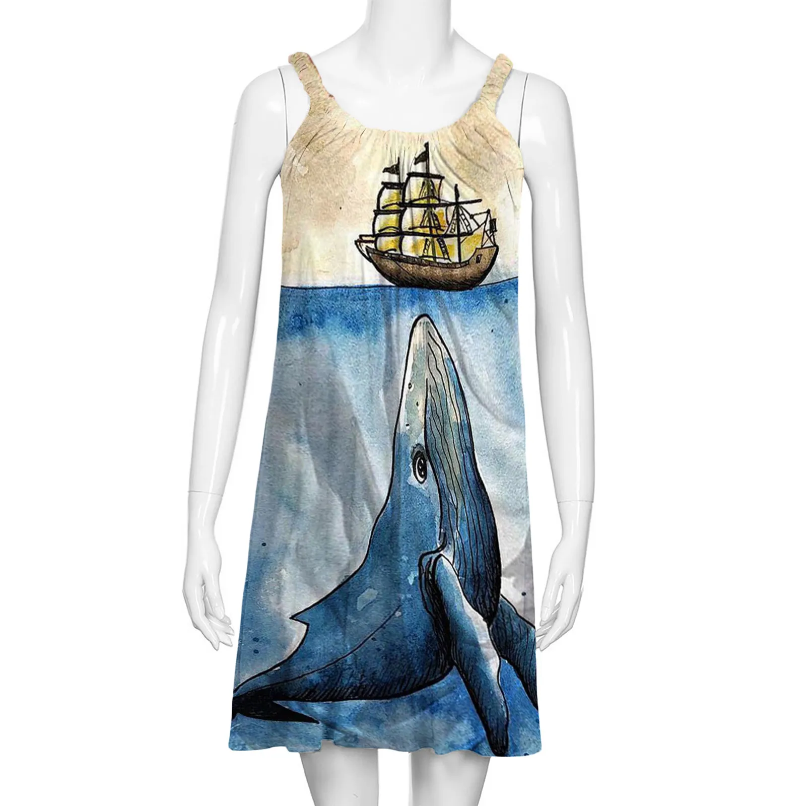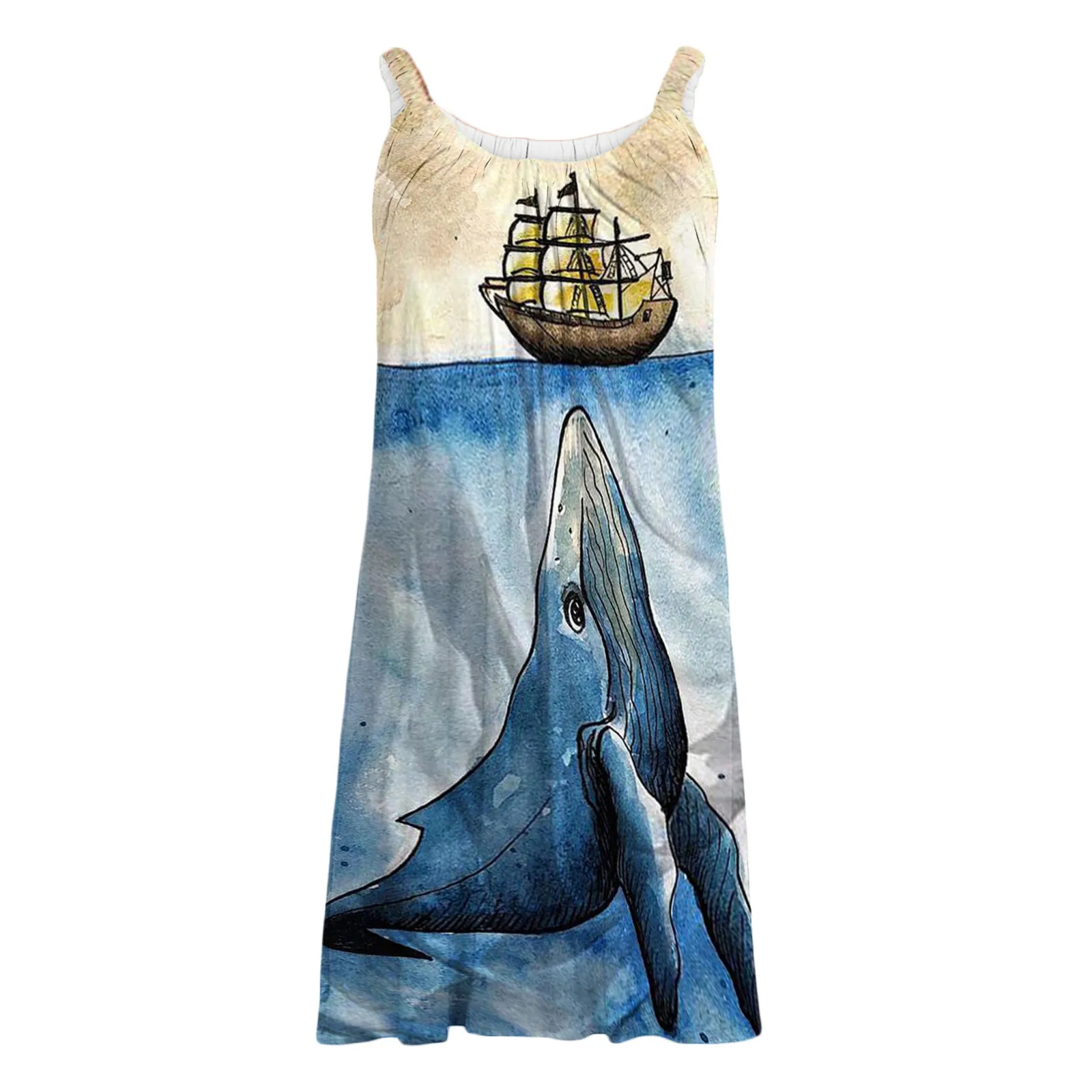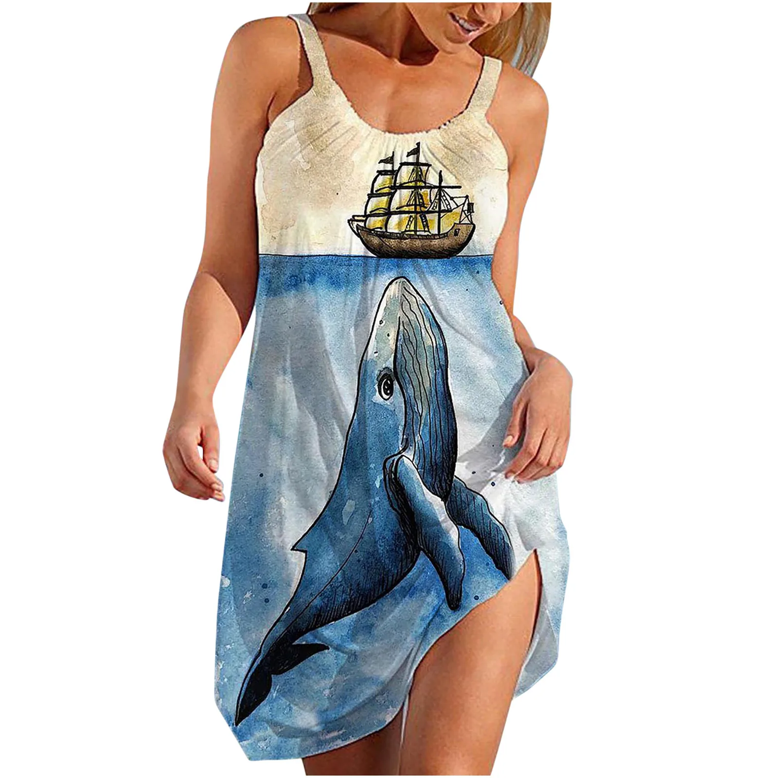 Женское модное сексуальное пляжное платье без рукавов с принтом морской жизни