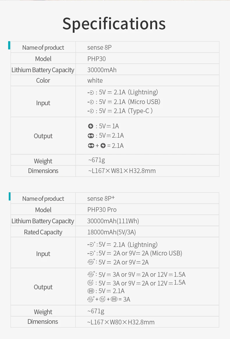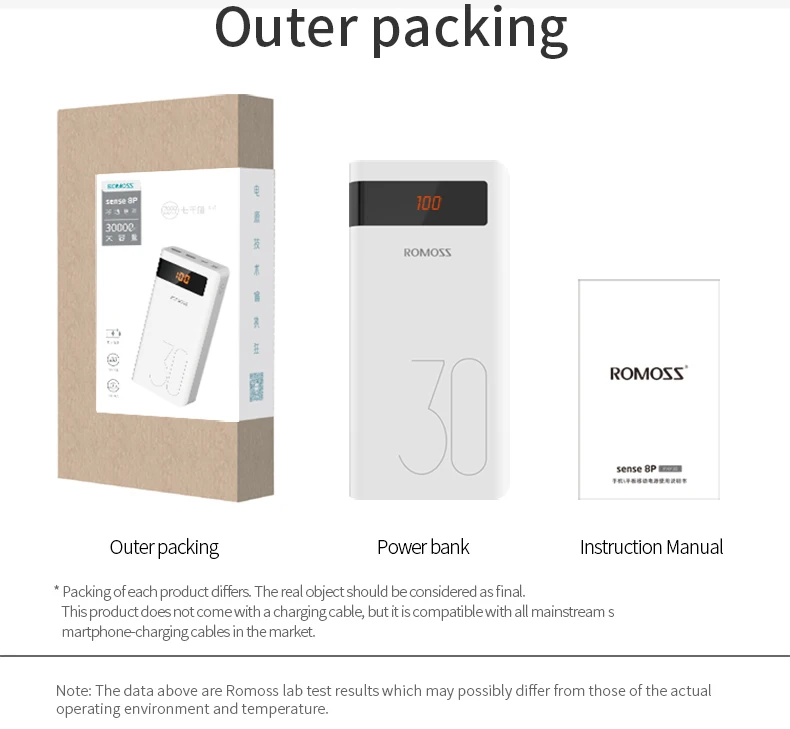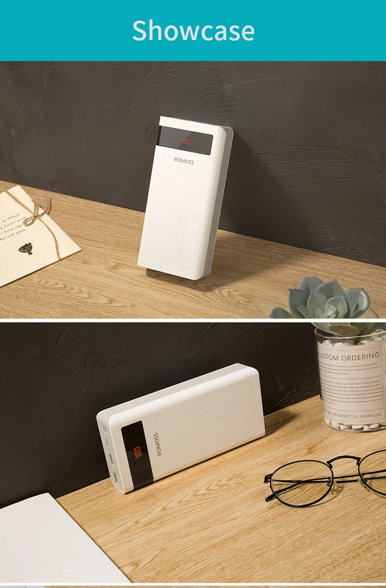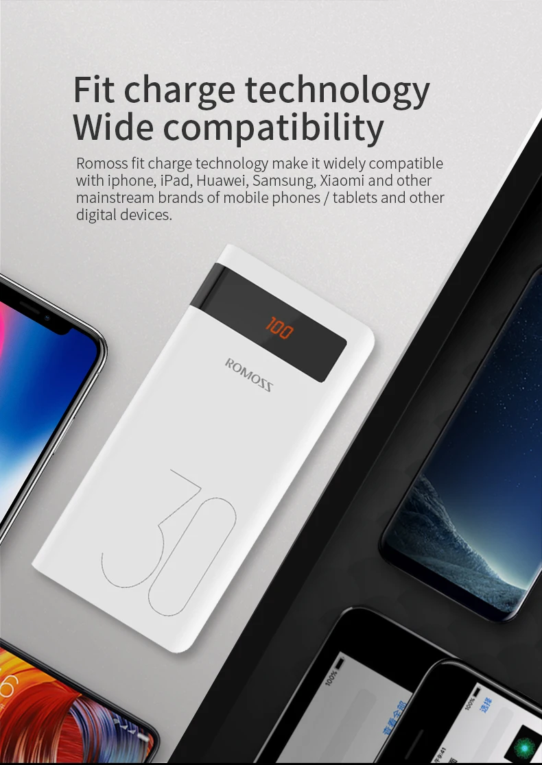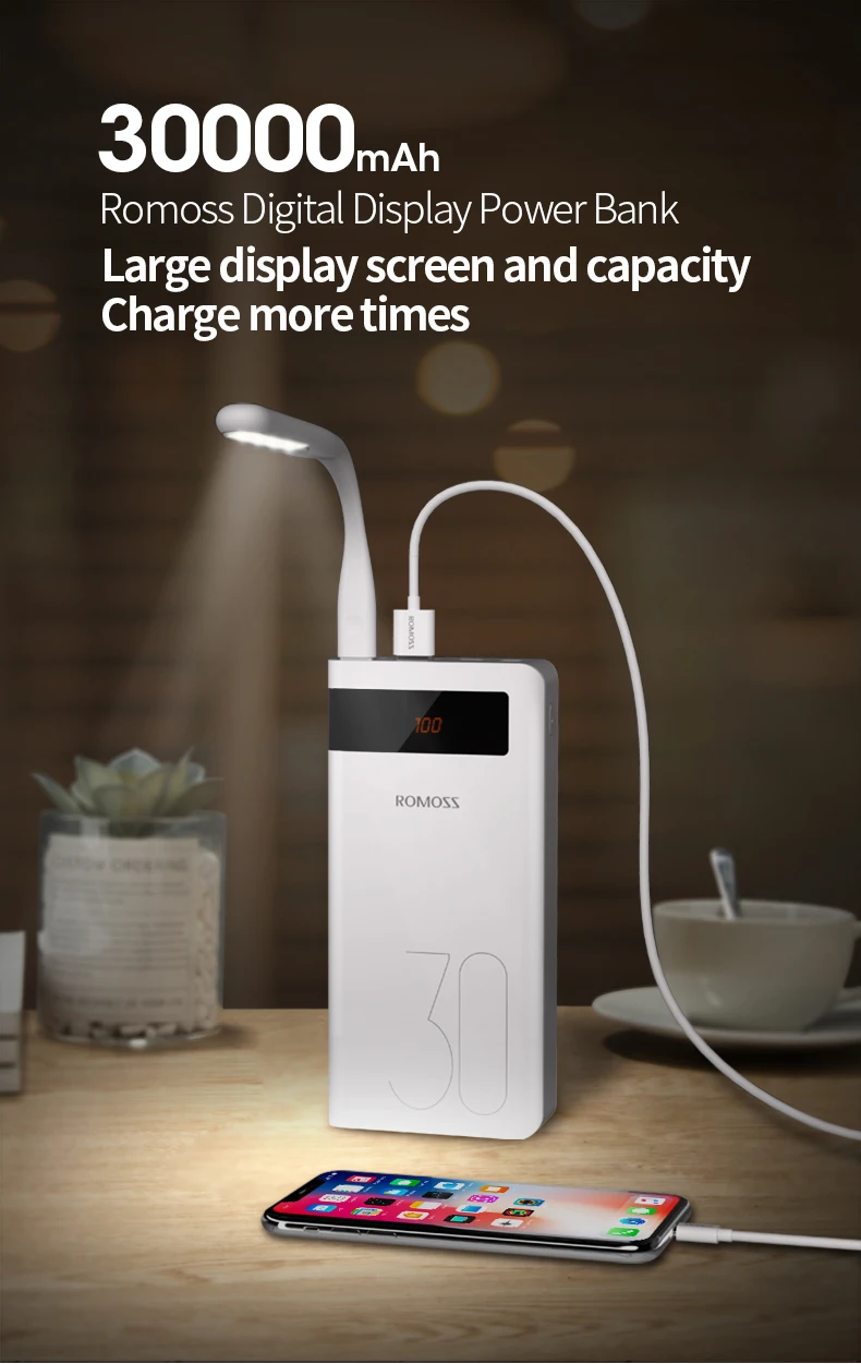 ROMOSS Sense 8P+ Повербанк 30000 мАч Портативный Внешний Аккумулятор C PD Двусторонняя Быстрая Зарядка Болшой Цифровой Дислей