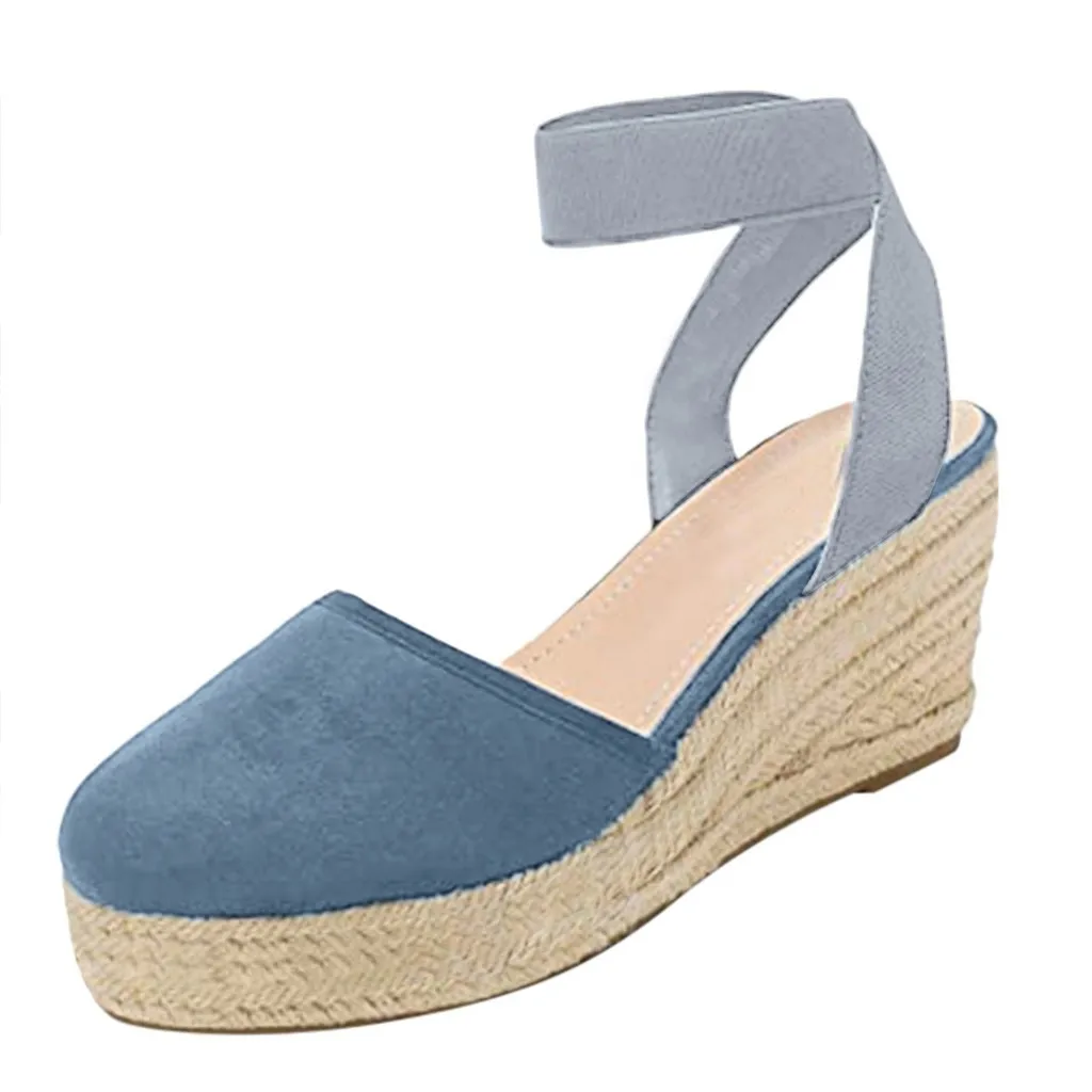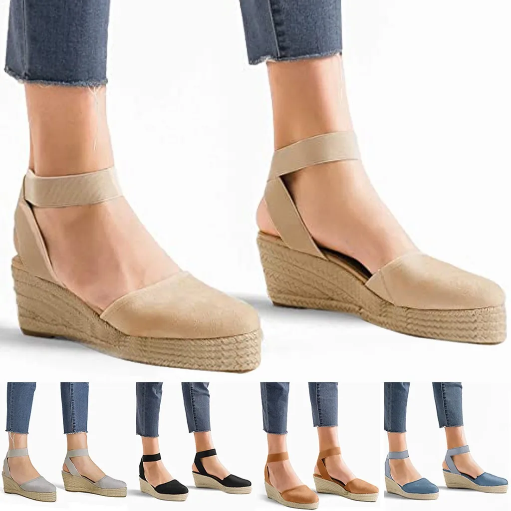 Сандалии женские в стиле ретро, соломенные босоножки с пеньковой веревкой, льняная обувь на танкетке, с круглым носком, повседневные туфли, элегантные сандалии с закрытым носком