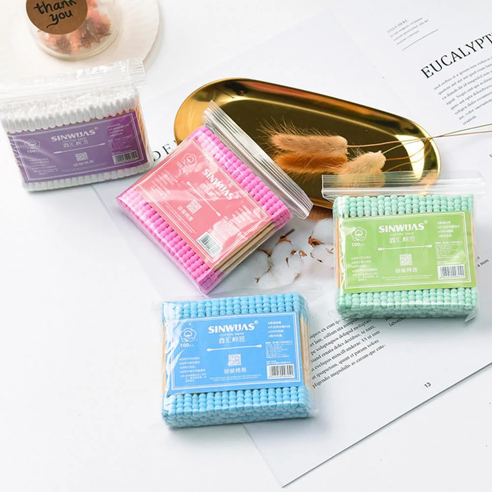 100 шт., деревянные палочки для снятия макияжа, 4 цвета