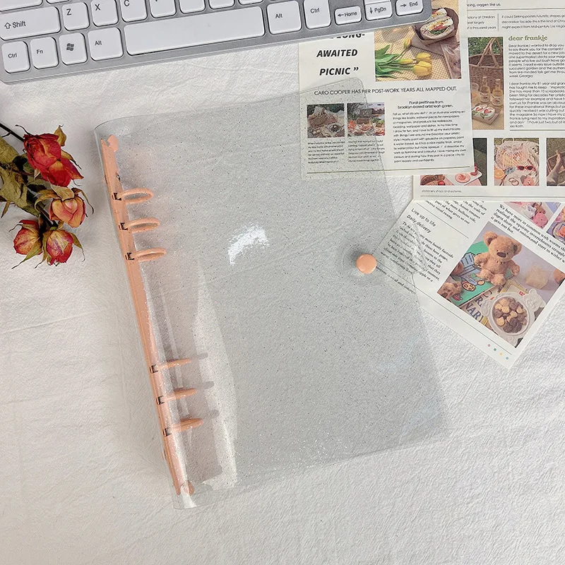Обложка для блокнота А5А6 на 6 колец, Прозрачная Обложка из ПВХ с листьями, дневник, ежедневник, планировщик, корейские школьные принадлежности, 1 шт.