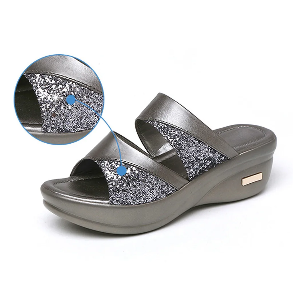 Сандалии женские с блестками, босоножки на платформе с кристаллами, туфли на танкетке с открытым носком, разноцветные, лето 2021
